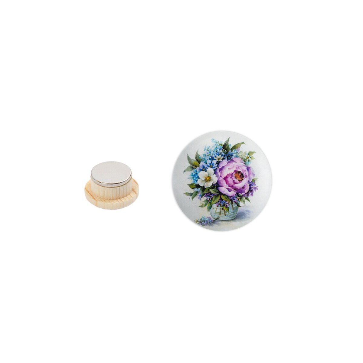 В набор входит: 1 шт. Размер: диаметр - 2,5 см. Производитель: Gamma. Тип: односторонняя. Форма: круг. Материал: дерево, металл. Вид магнита: неодимовый. Сюжет: цветы.