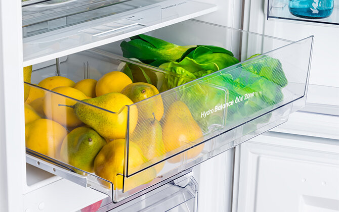 В сосуде Hydro Balance Zone с регулируемым уровнем влажности и с возможностью герметичного хранения, овощи, фрукты и зелень сохраняют свой вкус и сочность намного дольше