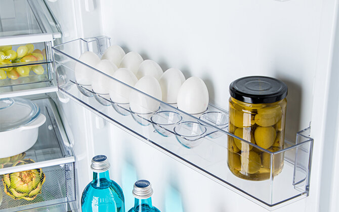 Вкладыш для 12 яиц можно устанавливать как в емкость на двери, так и на полку отделения