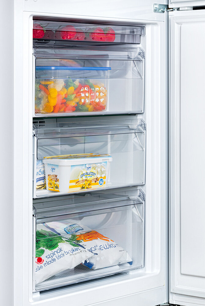 Корзины, наполненные продуктами, легко перемещать вне морозильника, так как на их боковых поверхностях предусмотрены ручки