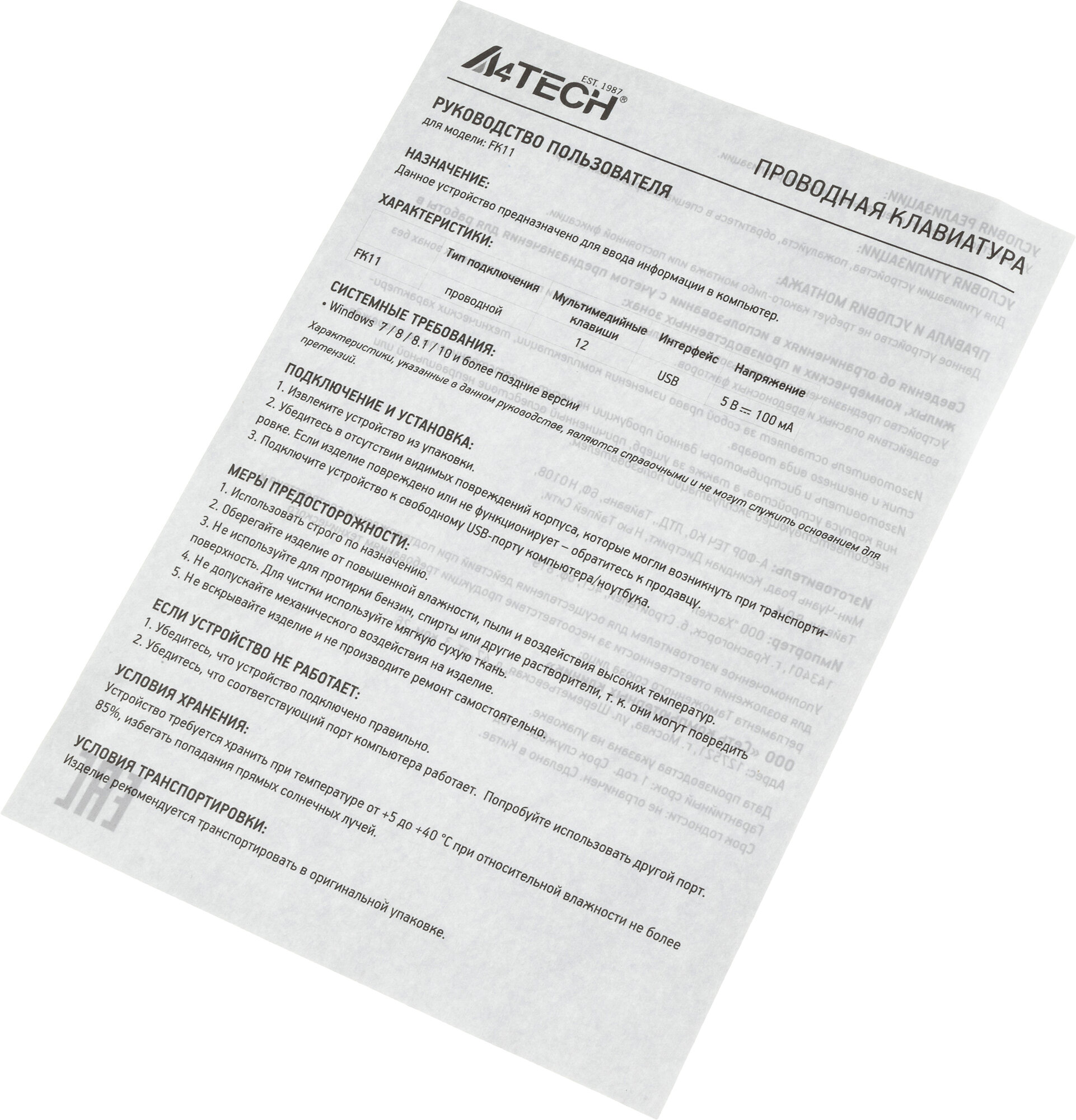- Компактная Клавиатура A4TECH Fstyler FK11