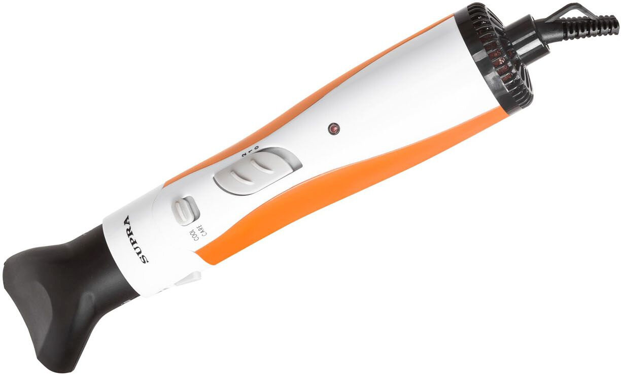 Фен-щетка SUPRA с 2 режимами нагрева и холодным обдувом сочетает в себе несколько инструментов: фен, щетку, выпрямитель и щипцы для завивки. Эта модель отлично справится с приданием формы и объема прическе и подходит для всех типов волос.