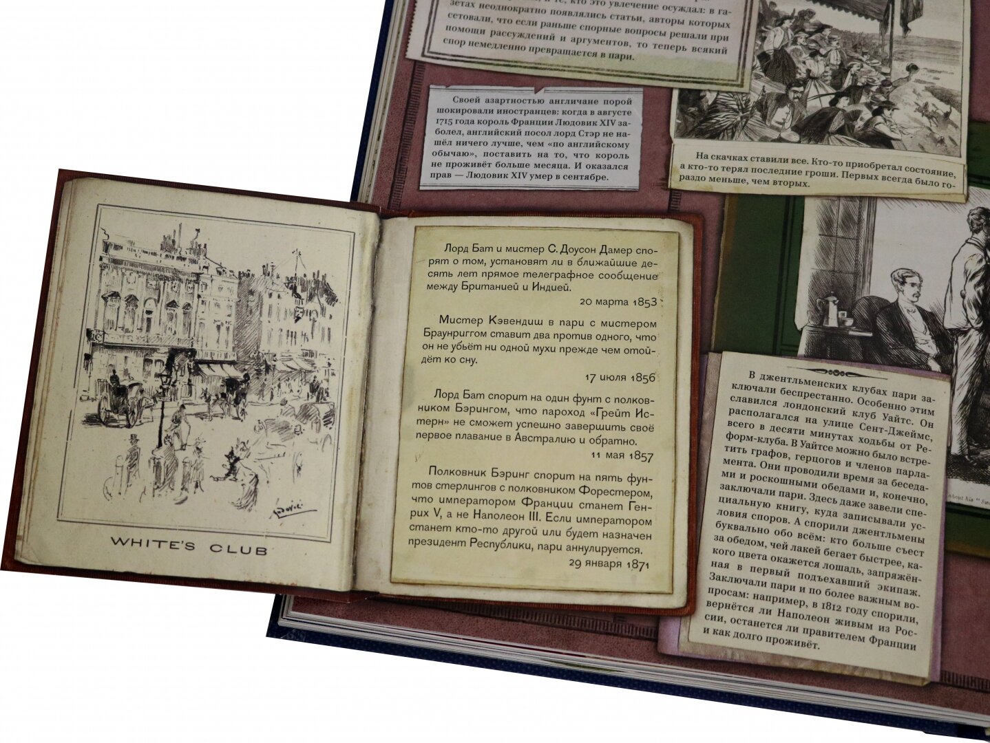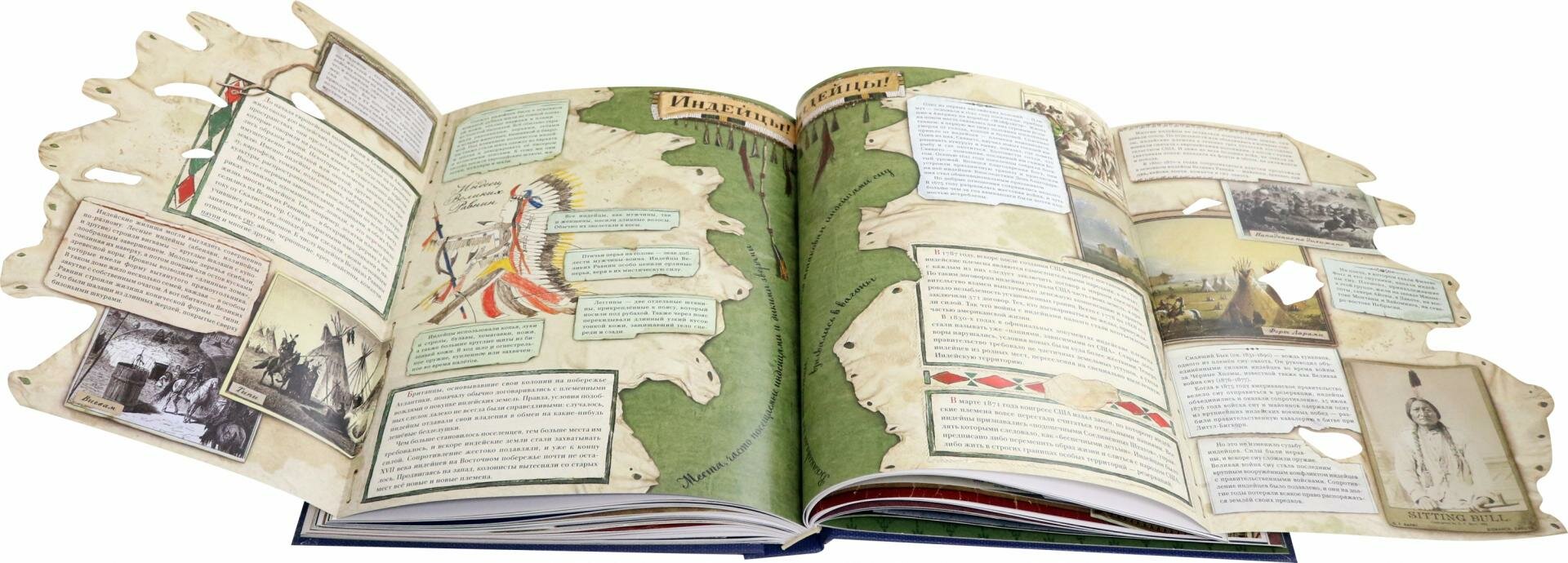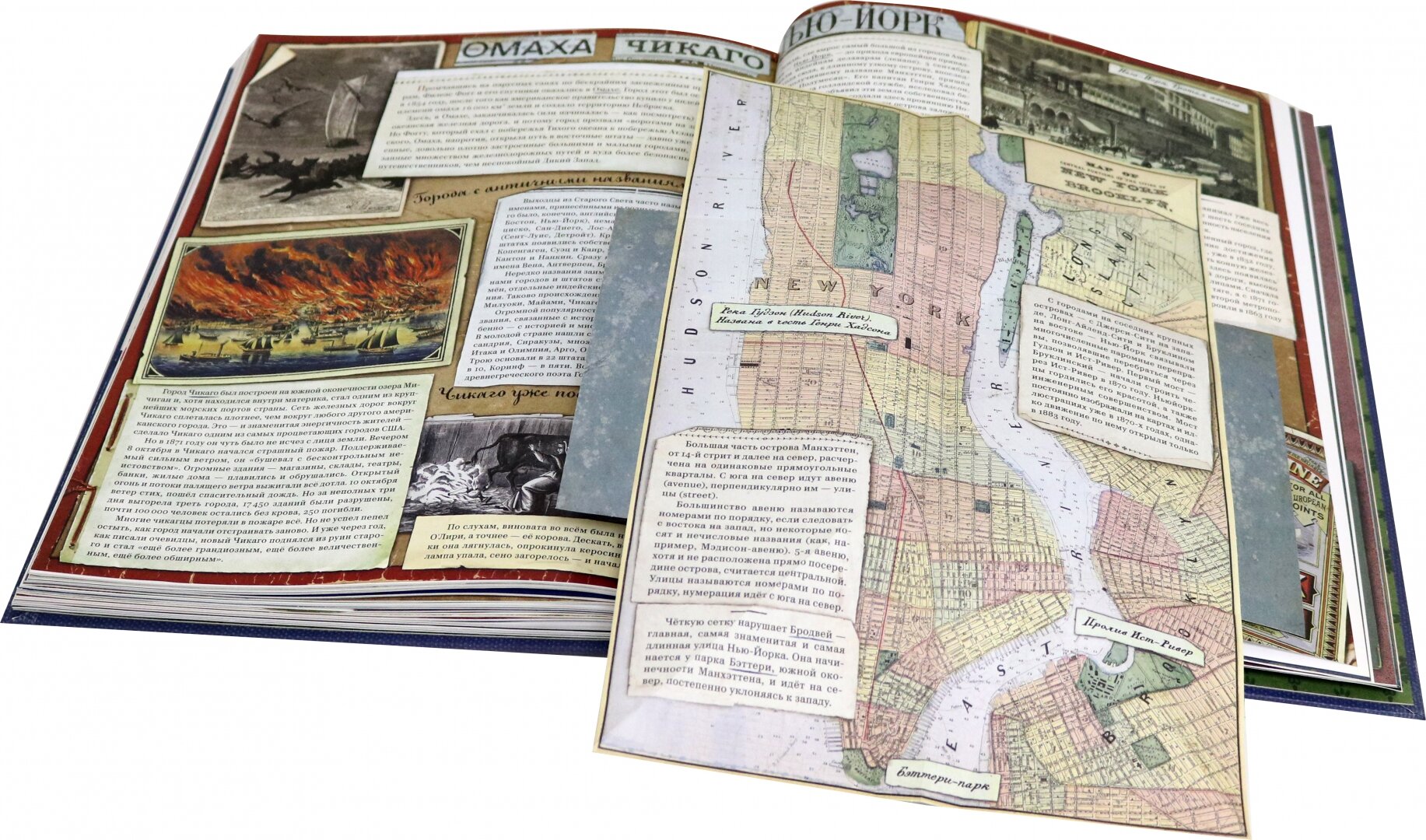 Тенистые сады Сингапура и шумные улицы Сан-Франциско, город мормонов и индийские джунгли, заснеженные просторы Небраски и чудесная долина Ганга - на тематических разворотах всё это можно изучить неспешно и внимательно, научиться отличать брахмана от кшатрия и вигвам от типи, разобраться в устройстве парусных судов, рассмотреть множество удивительных нарядов, причесок, повозок, жилищ и храмов и сверить маршрут с географическими картами XIX века.