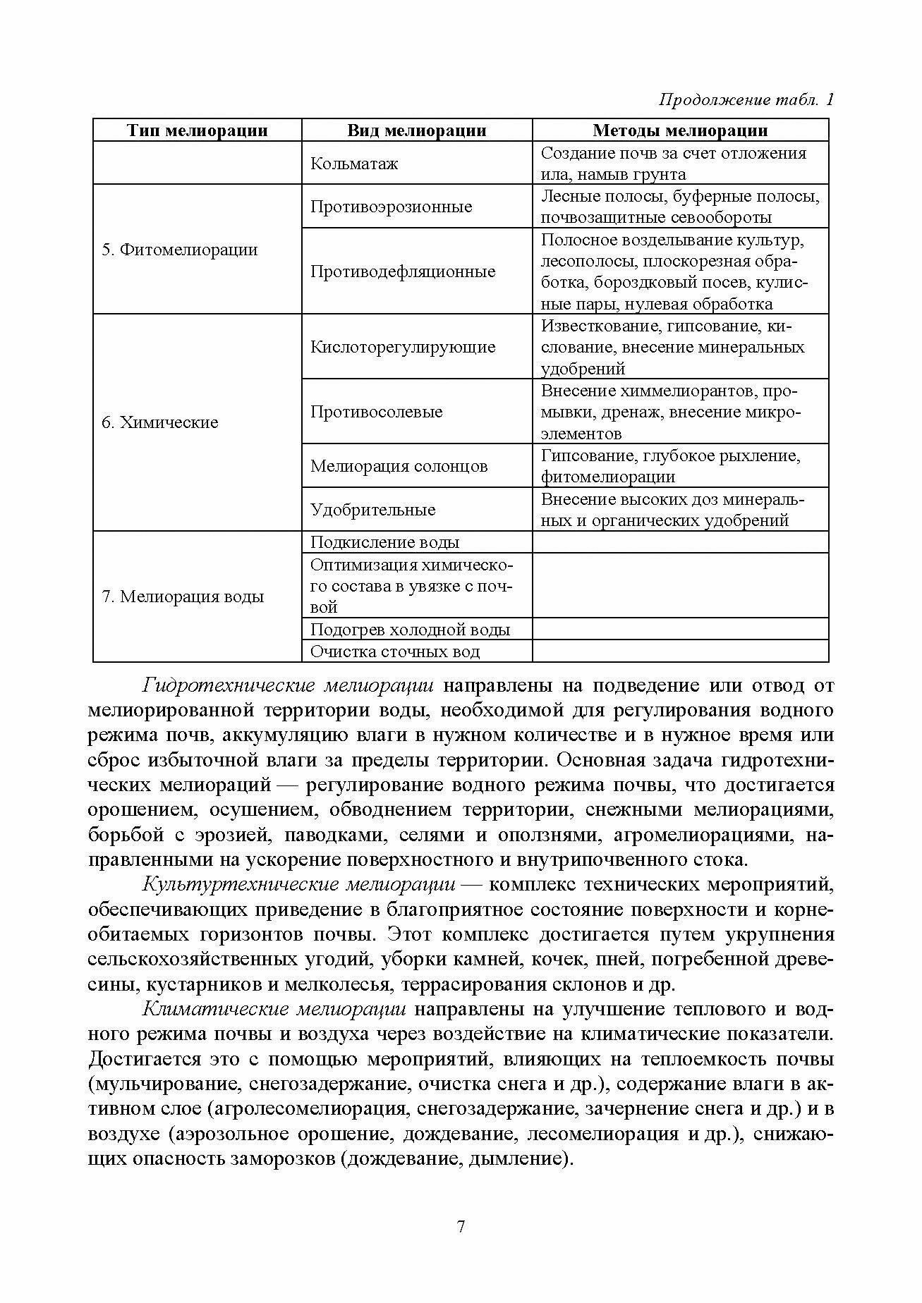 Рассмотрены вопросы сельскохозяйственной мелиорации, ее типы и виды, культуртехнические мелиорации, сельскохозяйственное водоснабжение, экологические проблемы мелиорации, ее экономическая эффективность.