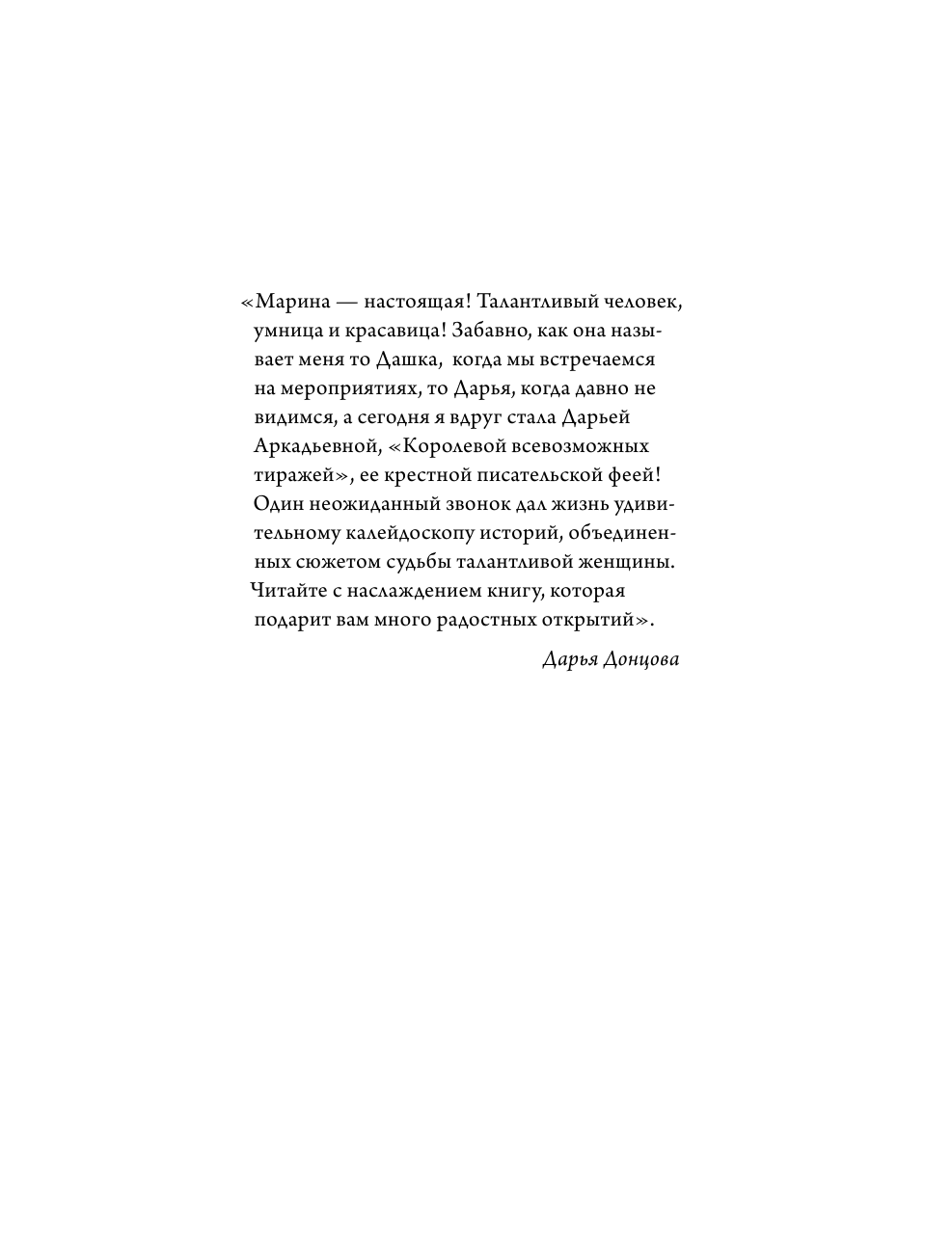 Это книга женщины о себе и о нас в мире. В ней много доброго юмора, много сердца, много мудрости, и вся она состоит из особой погружающей интонации, которая слышна с первых строк. Рекомендую и себе, и в подарок близким. Хочется сразу сесть и начать писать свою книгу, вспоминать саои семейные истории, задуматься, а что я за Женщина. Спасибо Марине за такой теплый искренний разговор с читателем! -