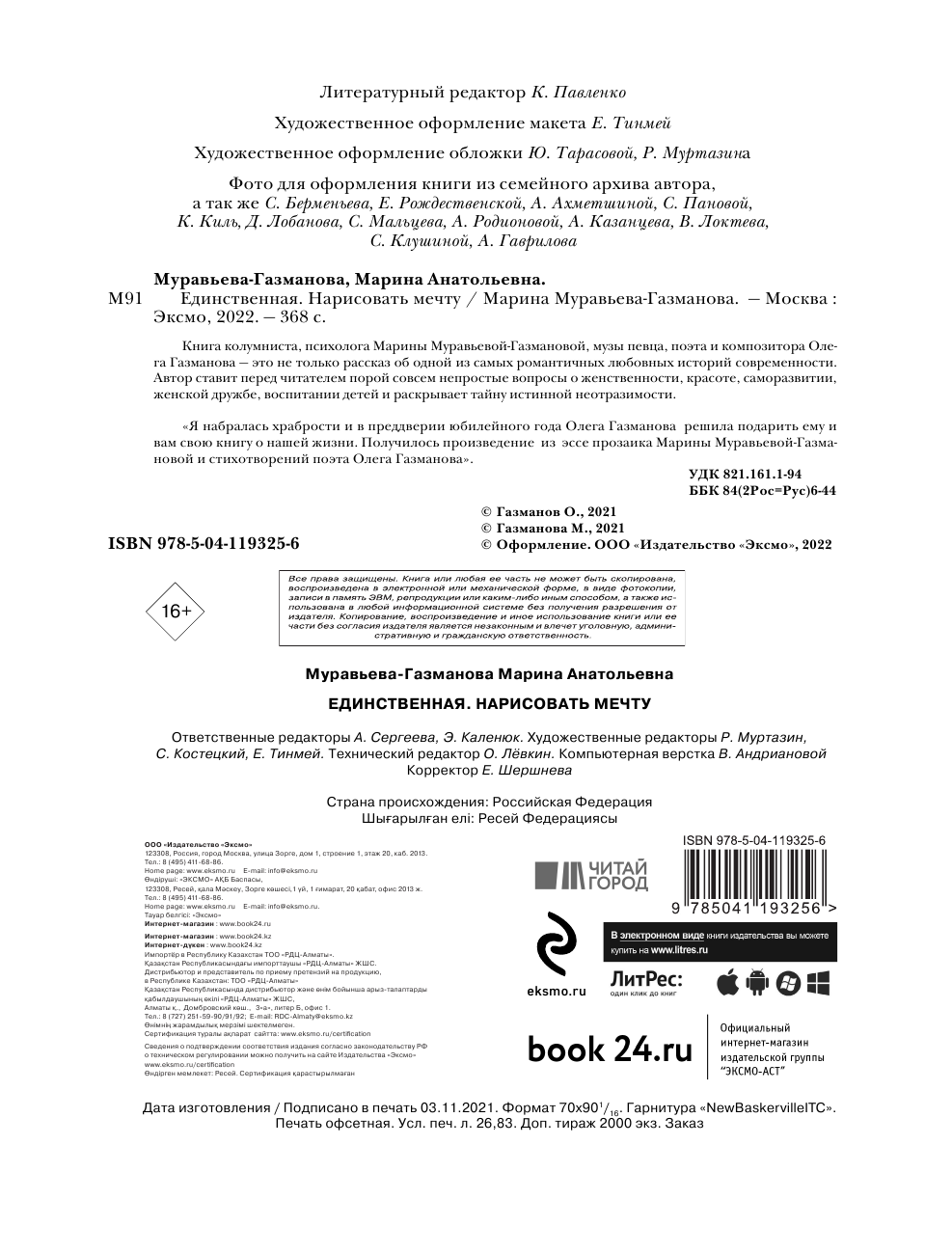 Единственная. Нарисовать мечту (Марина Муравьева-Газманова); Эксмо, Редакция 1, 2021