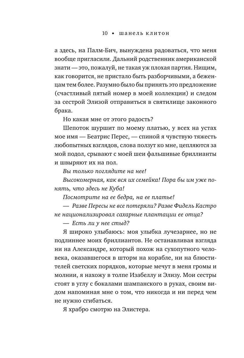 Беатрис захватила моё внимание с самой первой страницы. Её ум, сила, независимость и дух вызывают восхищение. Я читала эту книгу сразу после «Следующего года в Гаване», тоже Шанель Клитон, и теперь думаю, когда я смогу съездить посмотреть на Кубу сама. Беатрис, может, и вынуждена была бежать в США со своей семьёй, но её сердце осталось на Кубе, и именно её желание вернуть всё как было во многом является движущей силой романа. Я была очень увлечена сюжетом, он очень напряжённый. Это сразу и любовный роман, и исторический, и шпионский, и про любовь к родине, и просто отличная история про сильную женщину. Мне кажется, он может приятно удивить кого угодно
