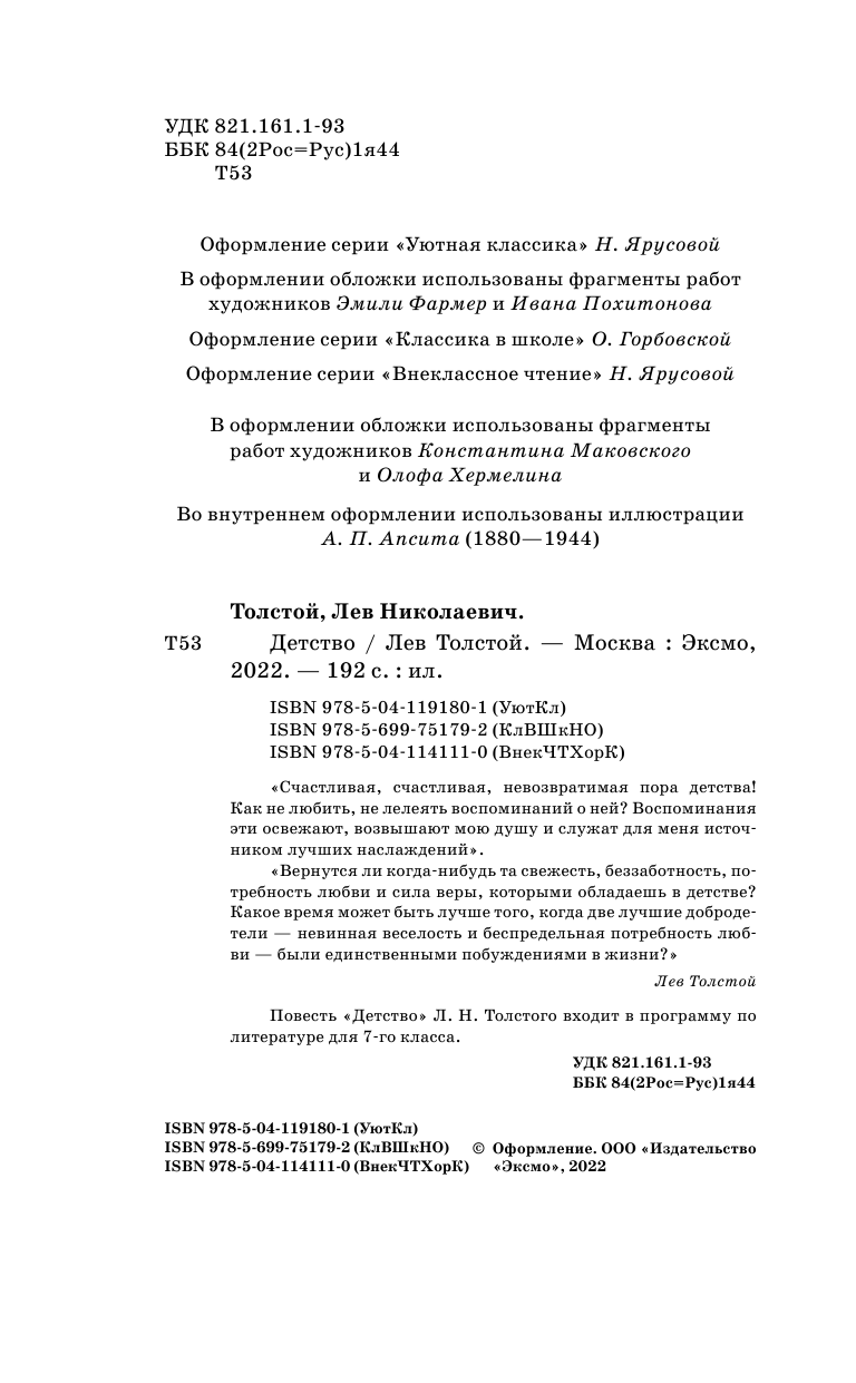 Книга: Детство (Толстой Лев Николаевич); ООО "Издательство "Эксмо", 2021