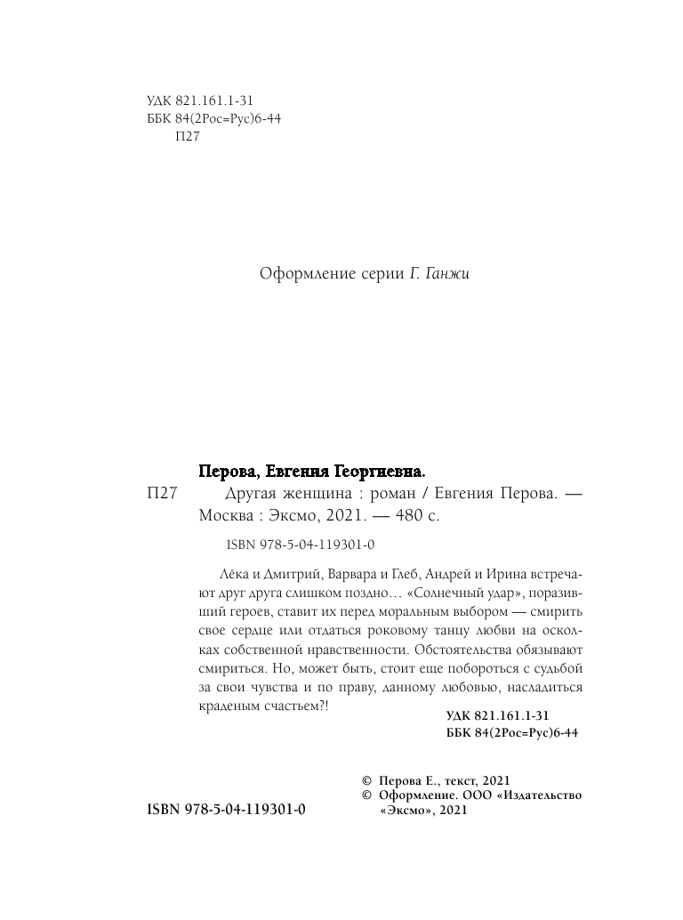Книга: Другая женщина (Перова Евгения Георгиевна); ООО "Издательство "Эксмо", 2021