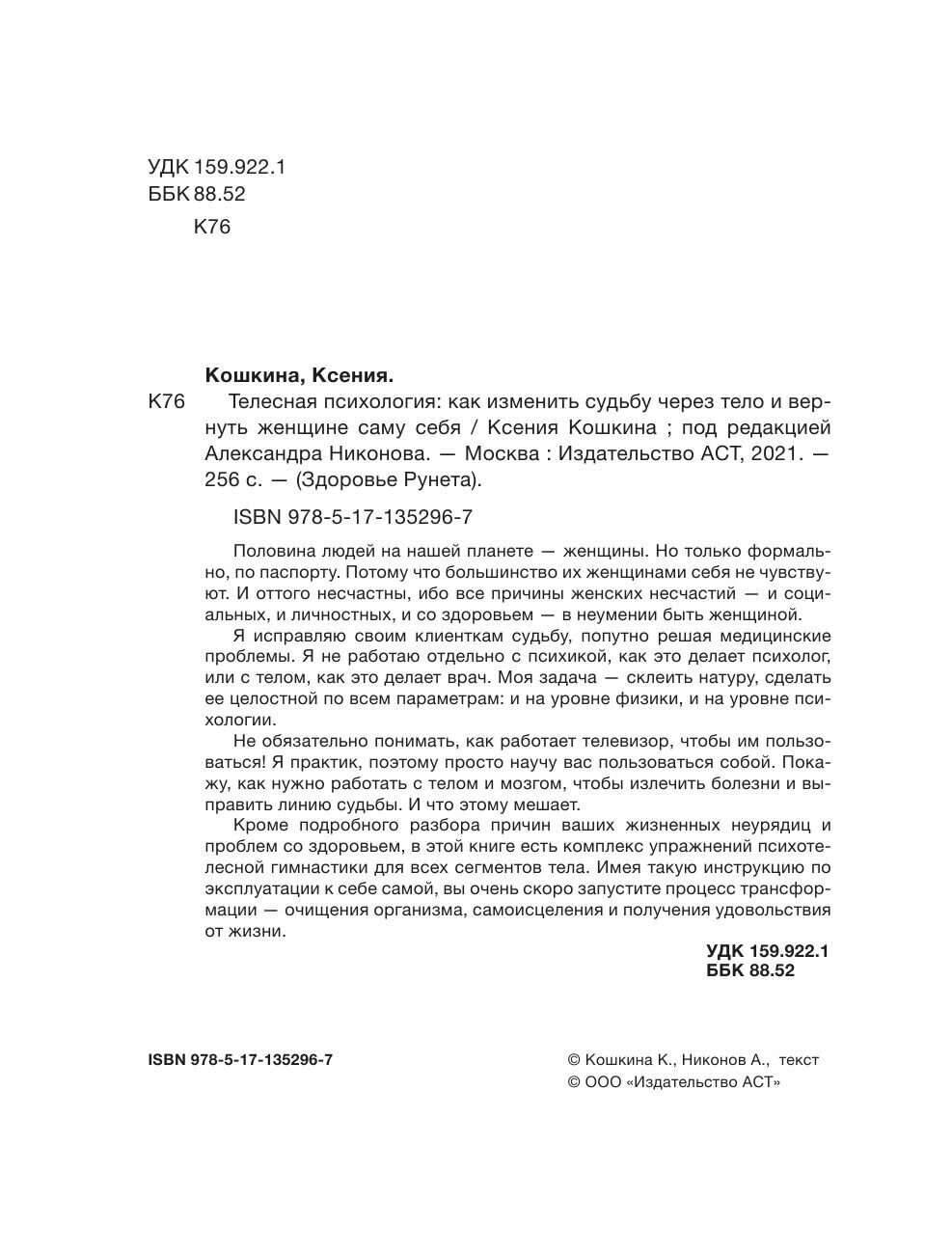 Телесная психология: как изменить судьбу через тело и вернуть женщине саму себя (Ксения Кошкина); Издательство АСТ, 2021
