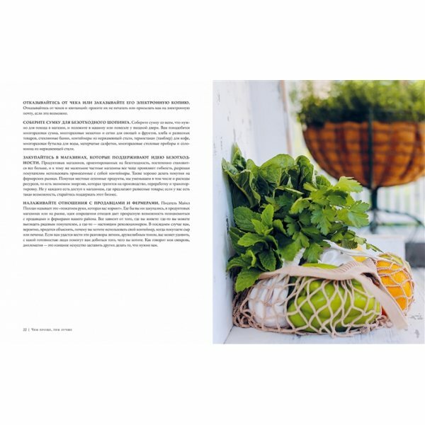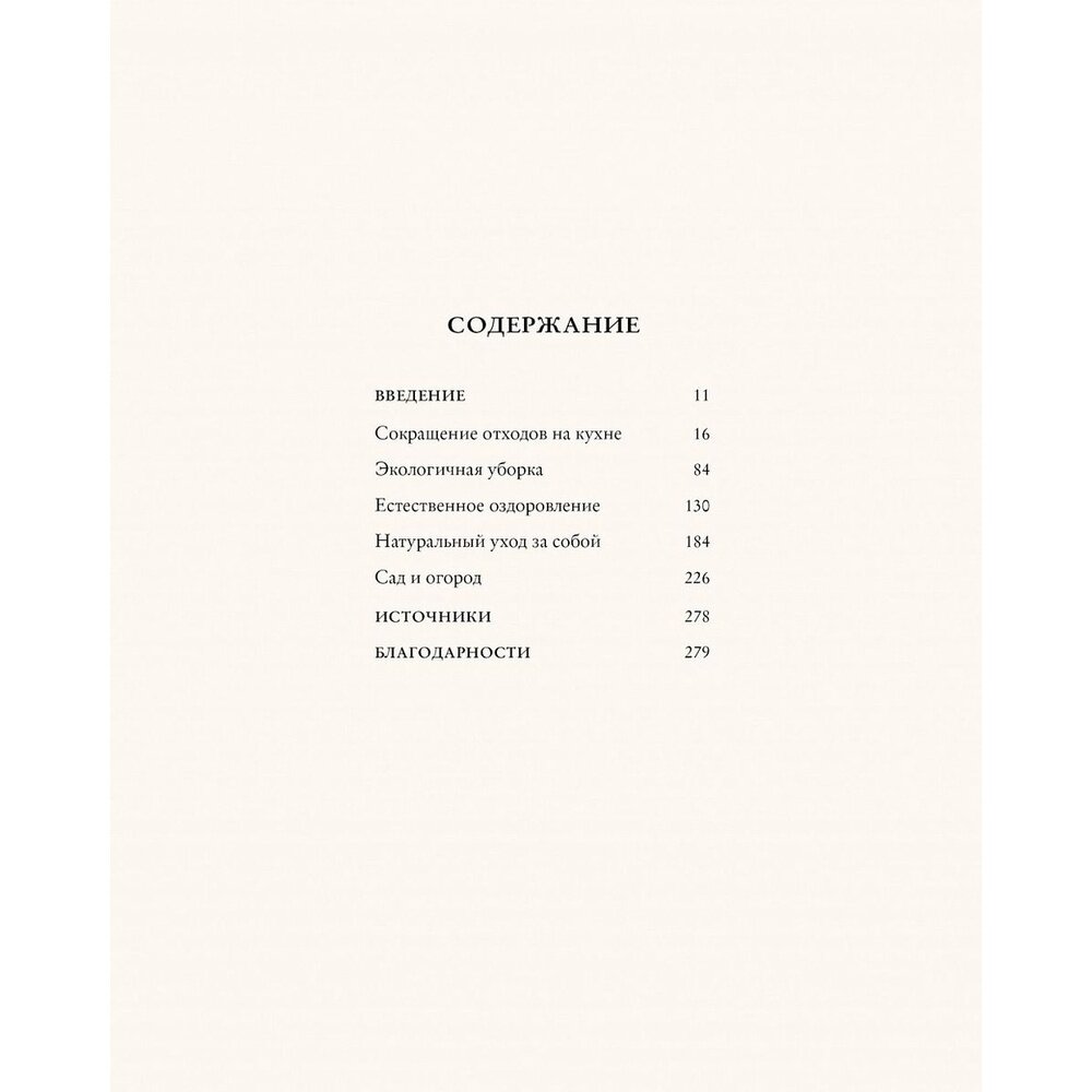 Купила книгу из-за раздела об уходе за собой, основанном на принципах натуральных и экологичных компонентов. Но прочитала её всю с огромным удовольствием. Конечно, раздел про красоту заслужил особое внимание. Оказывается, нет ничего проще сделать косметику для ухода своими руками-это намного качественнее и полезнее, чем покупать в магазине. А тоник для кожи лица получается просто супер. Кожа действительно выглядит более свежей и отдохнувшей. Также понравился раздел про то, как уменьшить количество отходов- это совсем не сложно, зато очень важно для нашей планеты!
