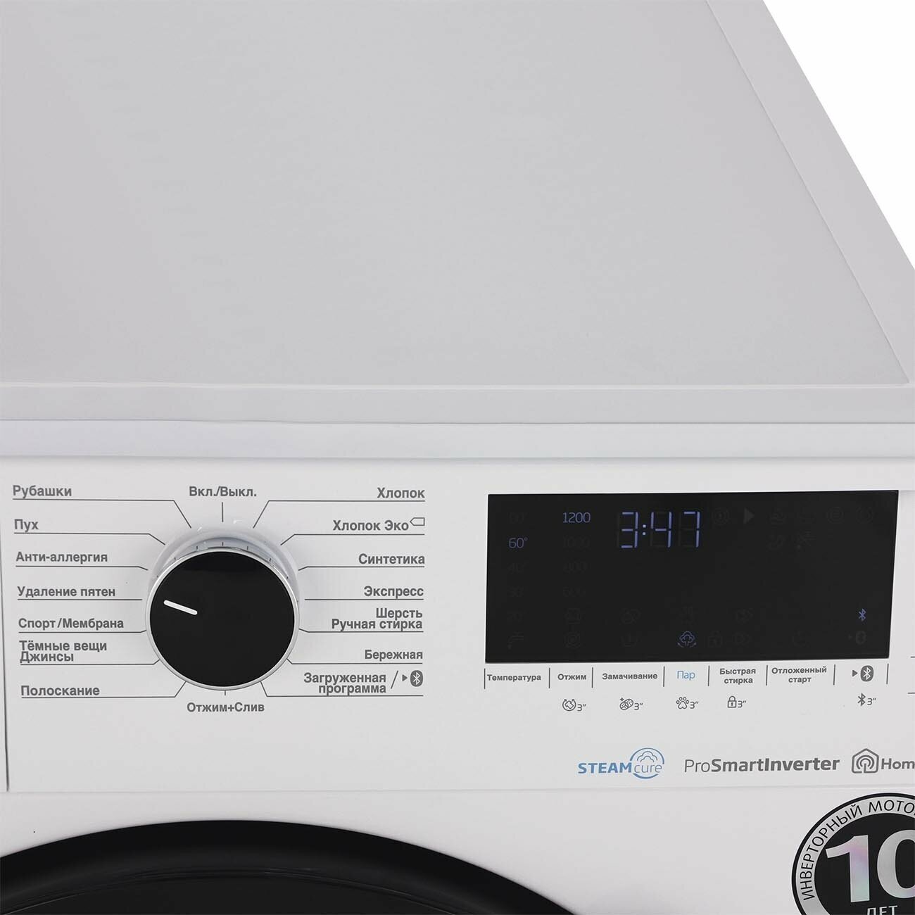 Инверторный двигатель обеспечивает надежность работы машины и продолжительный срок службы без излишних шумов или вибраций. Контурное освещение люка добавляет комфорта при использовании в условиях недостаточного освещения помещения.