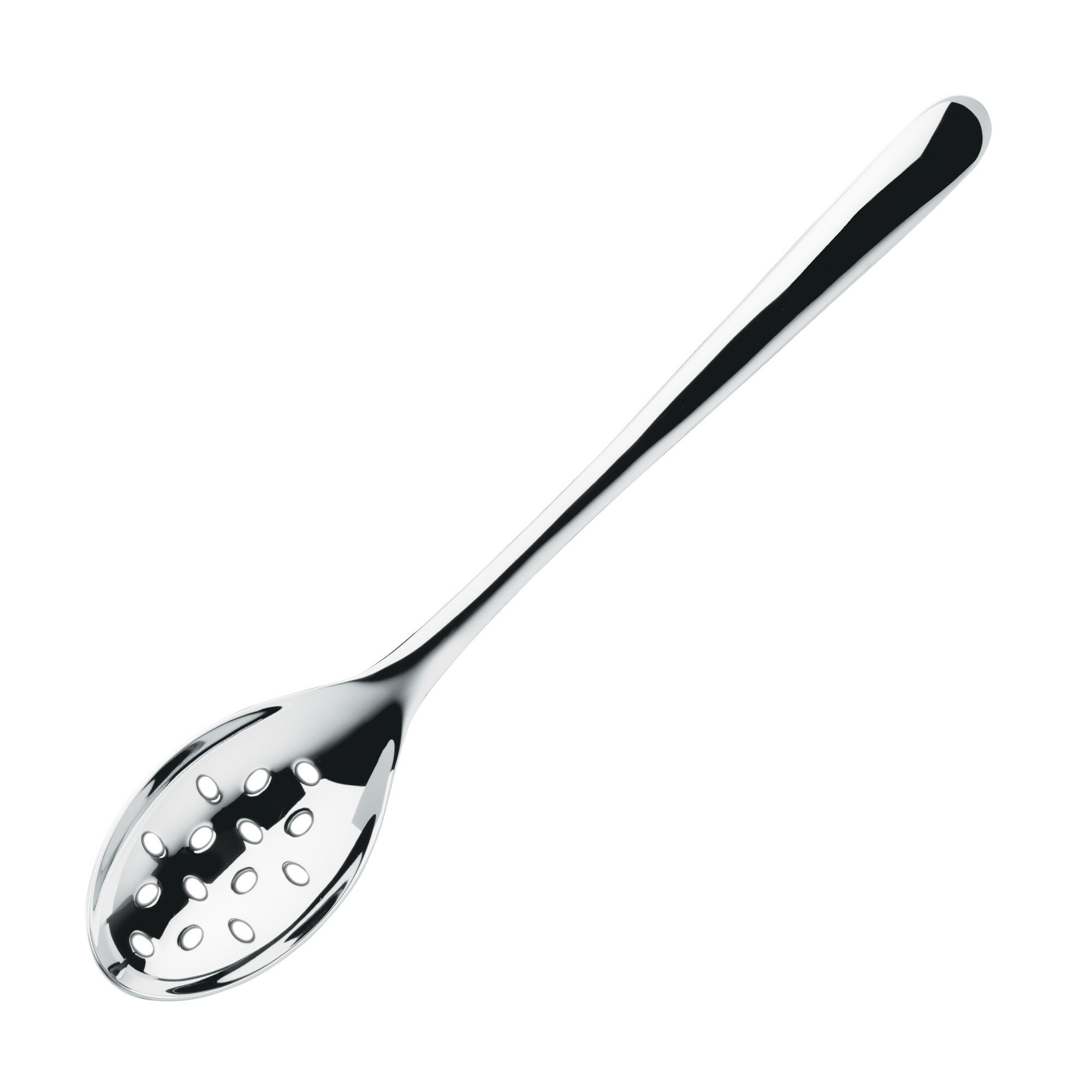 Сервировочная ложка Signature – вспомогательный столовый прибор, предназначенный для перекладывания приготовленных в соусе овощей из общего блюда на индивидуальные тарелки. Аксессуар впечатляет элегантной простотой и продуманной функциональностью: овальные отверстия на черпаке расположены таким образом, чтобы обеспечить полное стекание жидкости. Конец черенка плавно загнут для удобства подвешивания на подставку или рейлинг. Изделие выполнено из хромо-никелевого сплава и отполировано до зеркального блеска.
