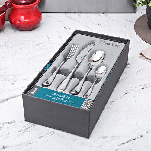 | Комплектация | Столовый нож 23,4 см - 6 шт., столовая вилка 19,8 см - 6 шт., столовая ложка 19,8 см - 6 шт., чайная ложка 13,7 см - 6 шт. |