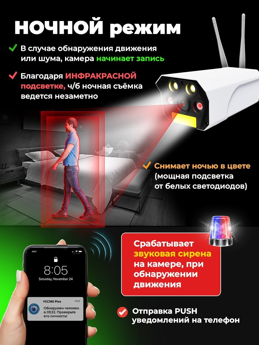 Ночная съемка без потери качества благодаря инфракрасной подсветке.