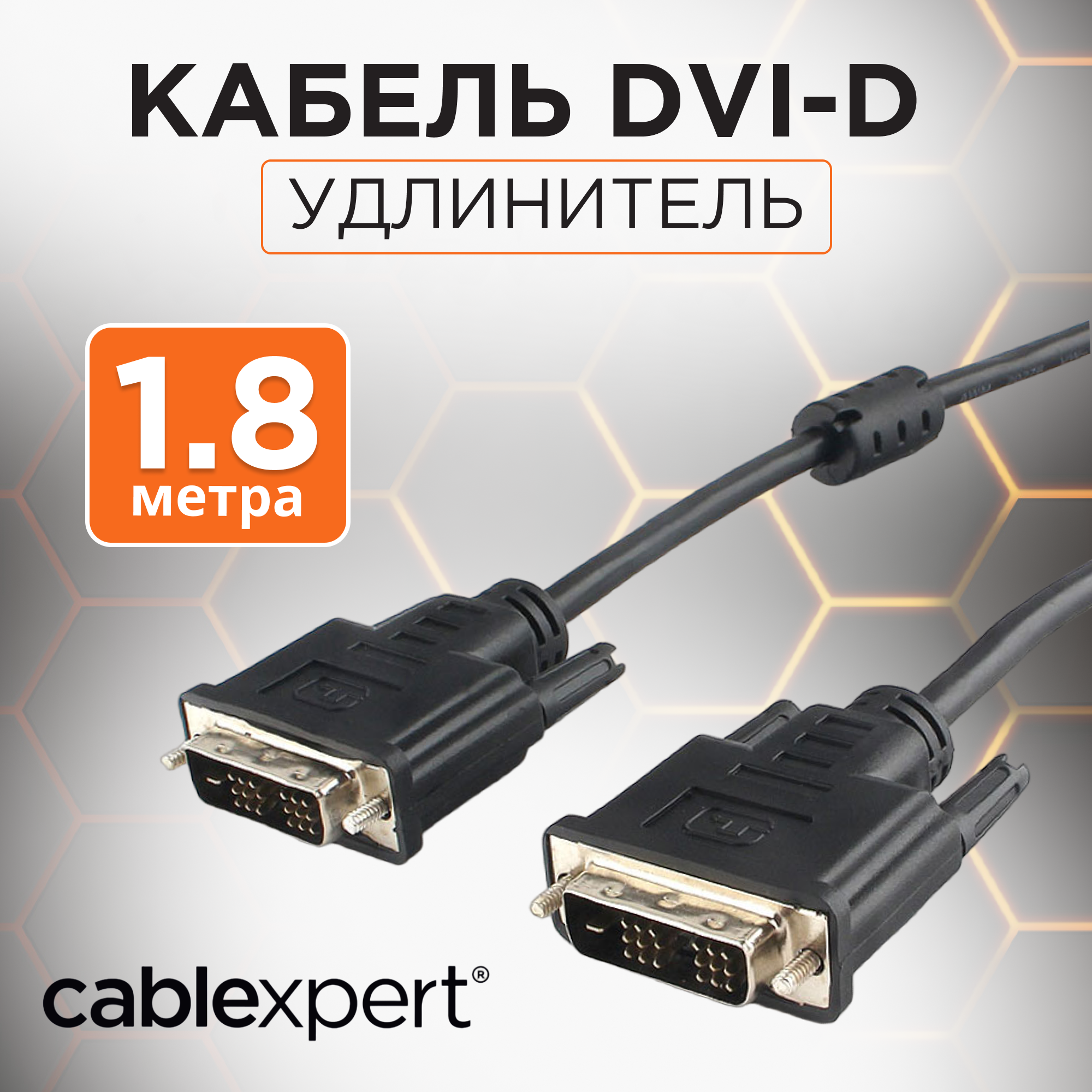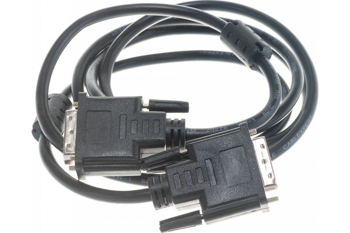 ОсобенностиКабель для соединения источника видеосигнала (видеоадаптер и др.) с устройством вывода изображения (монитор, проектор и др.) с интерфейсом DVI-D Single linkДвойная экранировка для снижения помехДва ферритовых кольцаТехнические характеристикиРазъёмы на кабеле: два 19-контактных DVI-DМатериал проводников: CCS (Copper Clad Steel - омеднённая сталь)Длина: 1.8 м