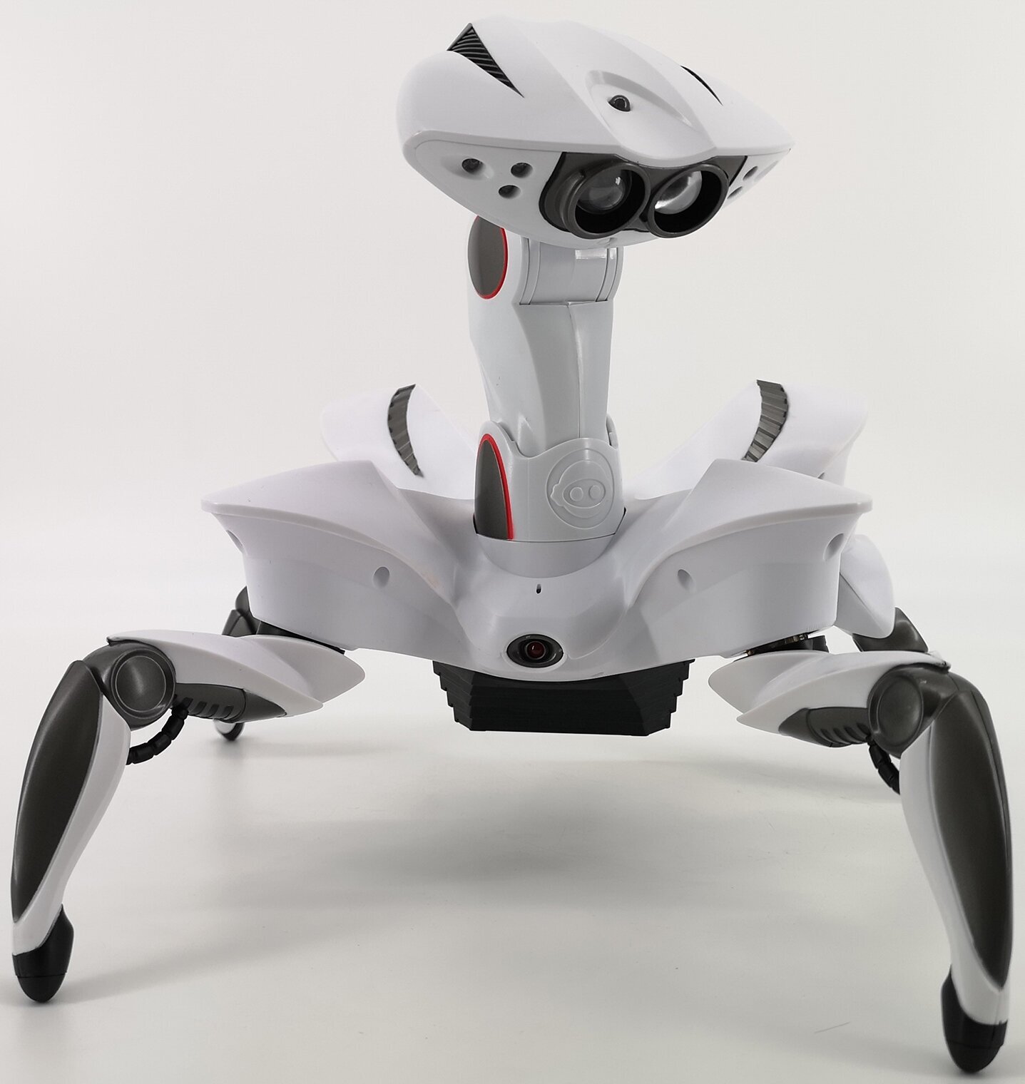WowWee Roboquad – любознательный робот, обладающий уникальными движениями и множеством ультрасовременных датчиков. Его индивидуальность заключается в том, что вы можете менять его реакции, поведение или уровни агрессии. Управляйте роботом с помощью пульта дистанционного управления, управляйте его сканером, звуковым датчиком и наблюдайте за его экстраординарными реакциями. Roboquad комплектуется аккумулятором повышенной емкости для выполнения продолжительных заданий. получает гораздо больше информации, чем любой другой робот, благодаря встроенному IR сканеру и продвинутой технологии. Робот способен определить движение на расстоянии до 4 метров, искать и проходить через дверные проемы, обнаружить край стола. Робот реагирует на объекты и легкий шум в зависимости от выбранных настроек, которые состоят из трех параметров поведения – активности, сознания и агрессии.