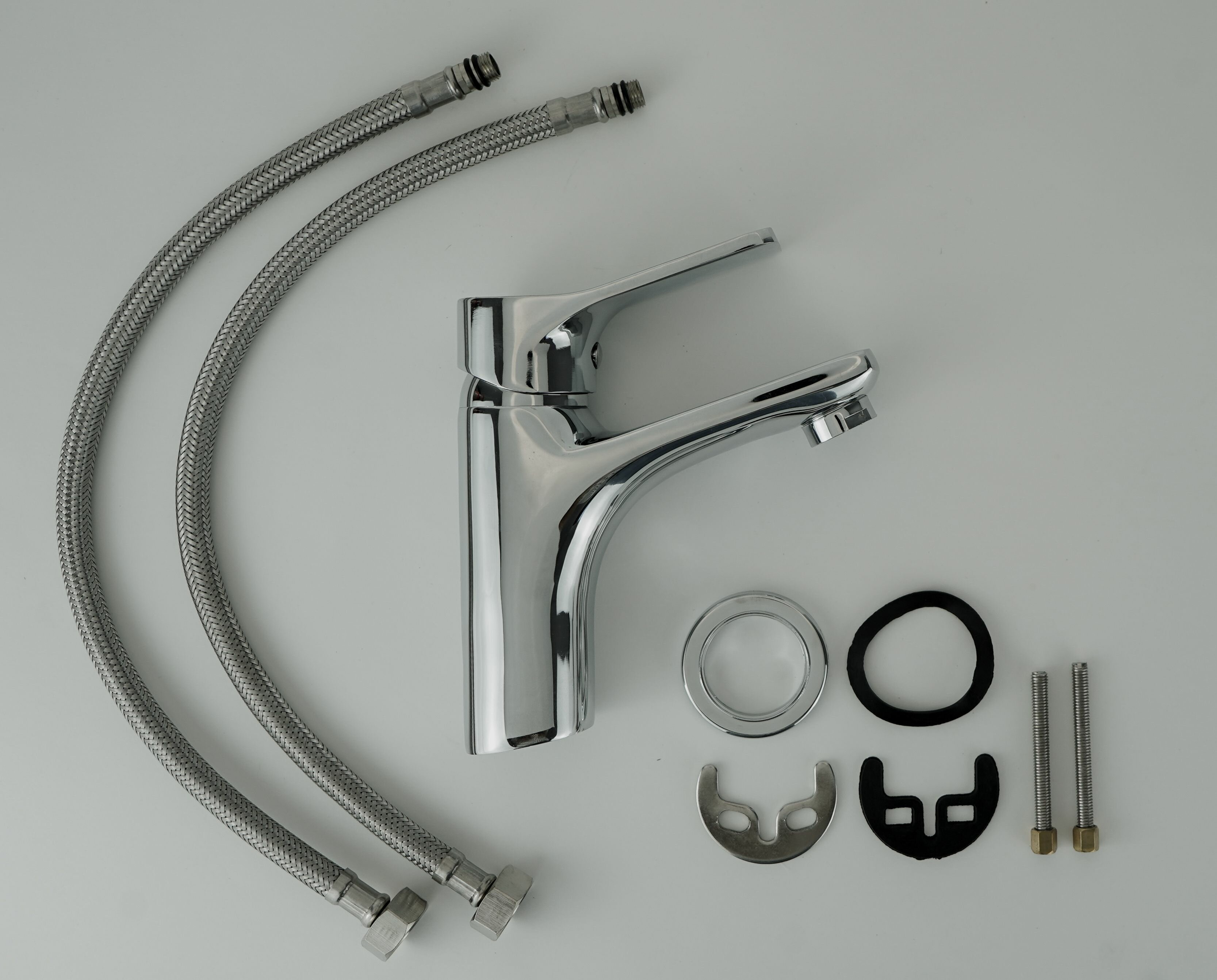 Смеситель устанавливают на раковину в ванной комнате с помощью входящей в комплект гибкой подводки.
