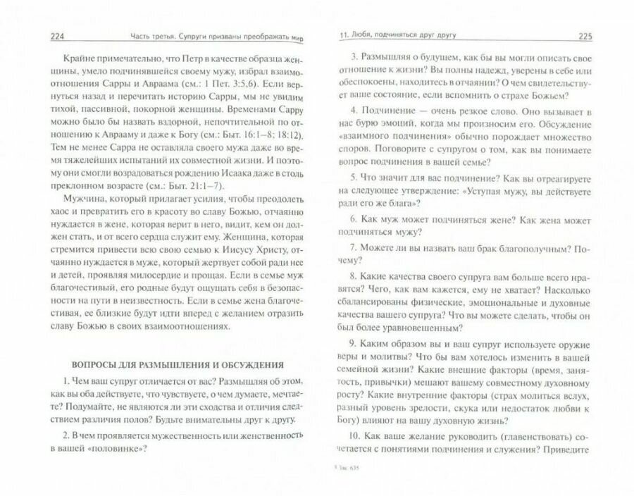 Брак — это не просто средство от одиночества и не только способ продления рода. В первую очередь — это отражение характера отношений между человеком и Богом. По замыслу Бога, наши супруги должны быть нашими союзниками, воинами в духовной борьбе с силами зла. Мы должны черпать силы и мужество в том человеке, который поддерживает нас в этой войне и кто близок нам по духу. Авторы предлагают нам учиться бороться за свой брак, используя те принципы, которые Бог заложил в основу брака.