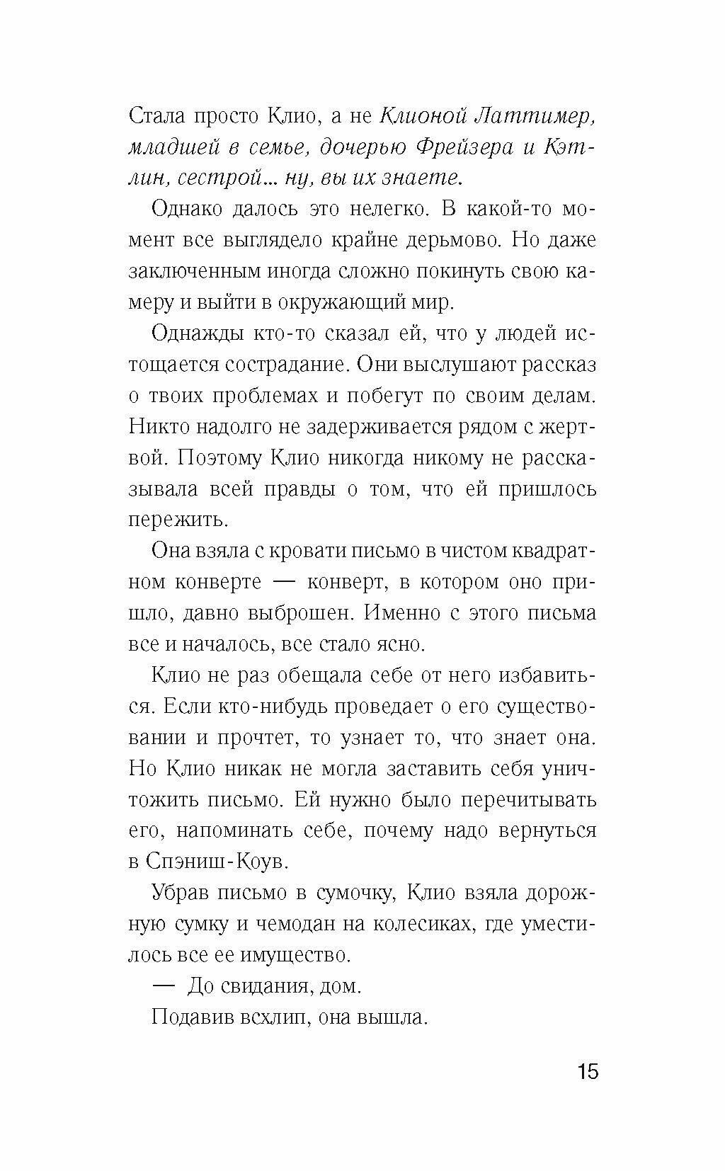 Жила-была семья Латтимеров: отец Фрейзер, мать Кейтлин, три сына: Джеймс, Адам, Райан и три дочки: Элен, Кэйт, Клио. Семья была знатна, богата и уважаема. Но десять лет назад всё пошло прахом: без вести пропал один из сыновей - Адам. Через год от горя умирает мать, а дети разбегаются из родового гнезда, кроме Элен. У каждого из них своя, со своими проблемами непростая жизнь. Самый счастливый из семьи отец, который вновь собирается жениться. И вдруг спустя десять лет "блудный" сын возвращается домой. В честь его возвращения и своей помолвки Фрейзер устраивает праздничную прогулку на яхте друга. Только вот счастливым на ней выглядит только один человек - сам Фрейзер. И именно он становится жертвой. Кто же убийца? Один из детей? Невеста? Или друг? Кто так ненавидел отца семейства, чтобы пойти на страшный грех убийства? С этим и пытается разобраться автор на протяжении почти 500 страниц, рассказывая о жизни каждого из детей. Братья и сестры несчастны и одиноки, у каждого свои проблемы. Что так повлияло на их жизни? Кто виновник разобщённости и одиночества? Правда ужасна и некрасива. Финал логичный. Книга понравилась. Надеюсь на дальнейшее знакомство с Джо Спейн.У автора есть цикл романов об инспекторе Томе Рейнольдсе. Оформление: серийное.
