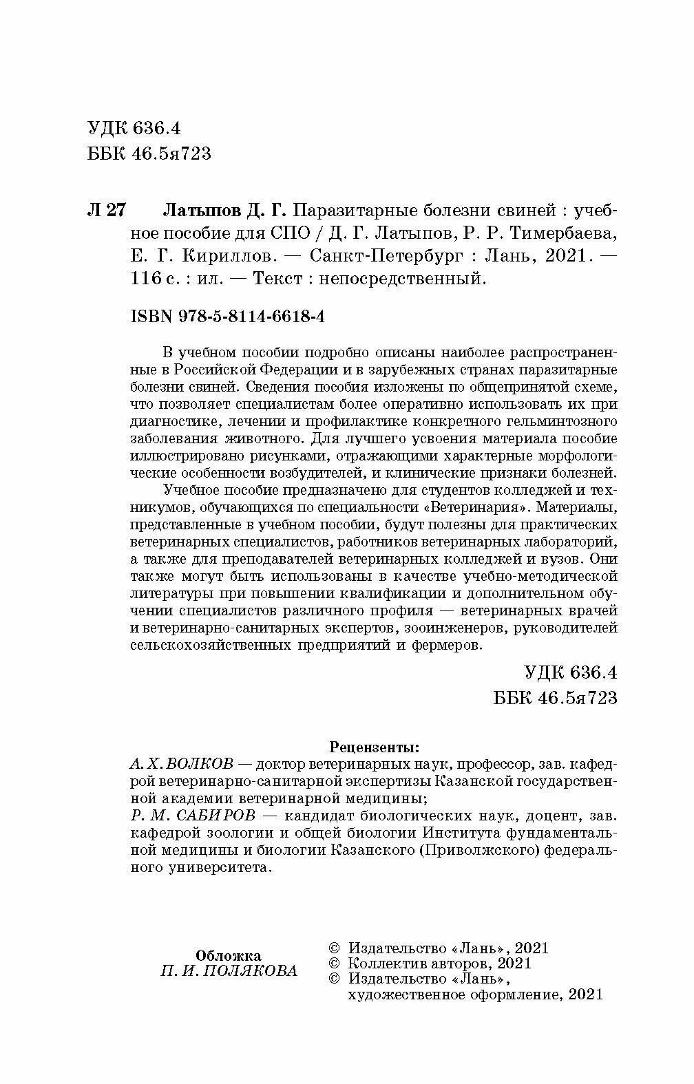 Паразитарные болезни свиней. СПО ("Латыпов Далис Гарипович; Тимербаева Разалия Рустамовна; Кириллов Евгений Геннадьевич"); Лань, 2021