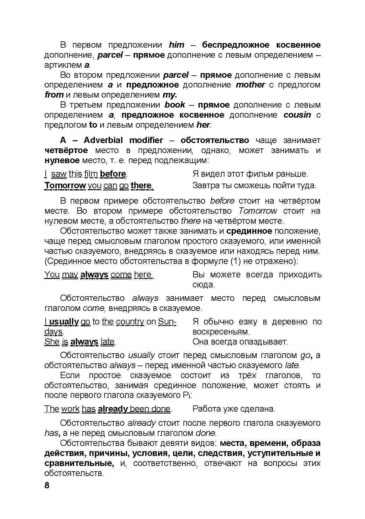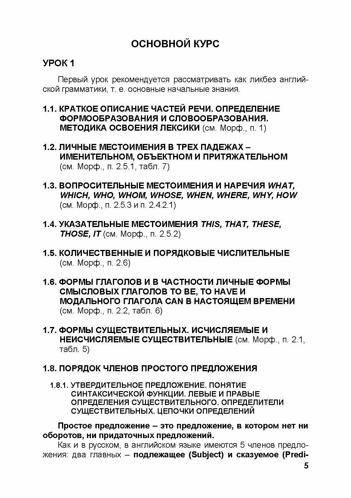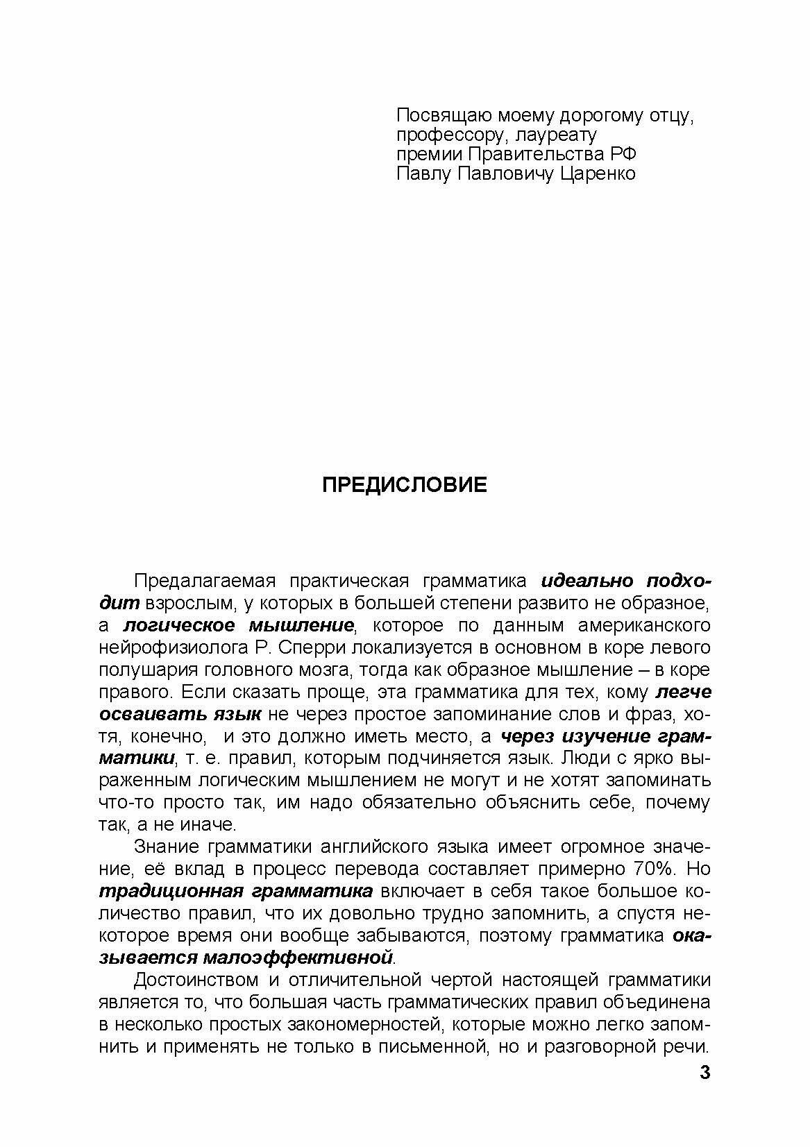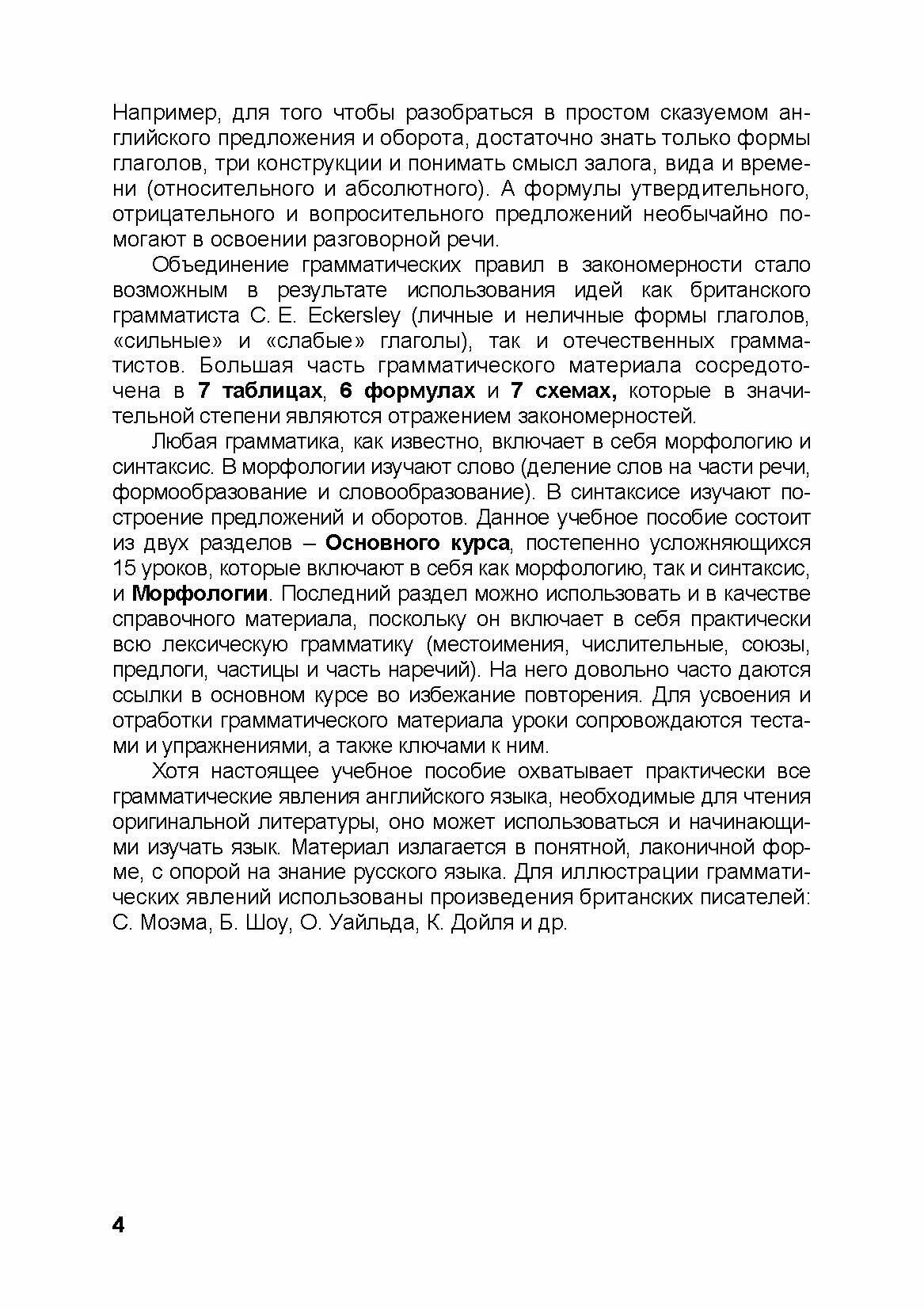 Учебное пособие предназначено для выполнения заданий на занятиях практикума, а также для организации и их контроля самостоятельно. Все части практической грамматики тесно взаимосвязаны. Материал каждого урока закрепляется тестами и упражнениями, а ключи к ним позволяют организовать эффективное самостоятельное изучение языка. Простота и доступность изложения дает возможность и начинающим изучать язык, вместе с тем пособие включает в себя практически все грамматические явления английского языка, необходимые для чтения оригинальной литературы. Особенностью предлагаемой грамматики является объединение большей часть грамматических правил в несколько закономерностей, что позволяет людям даже с плохой памятью овладеть ею в короткие сроки и использовать её не только для изучения письменного, но и разговорного языка.