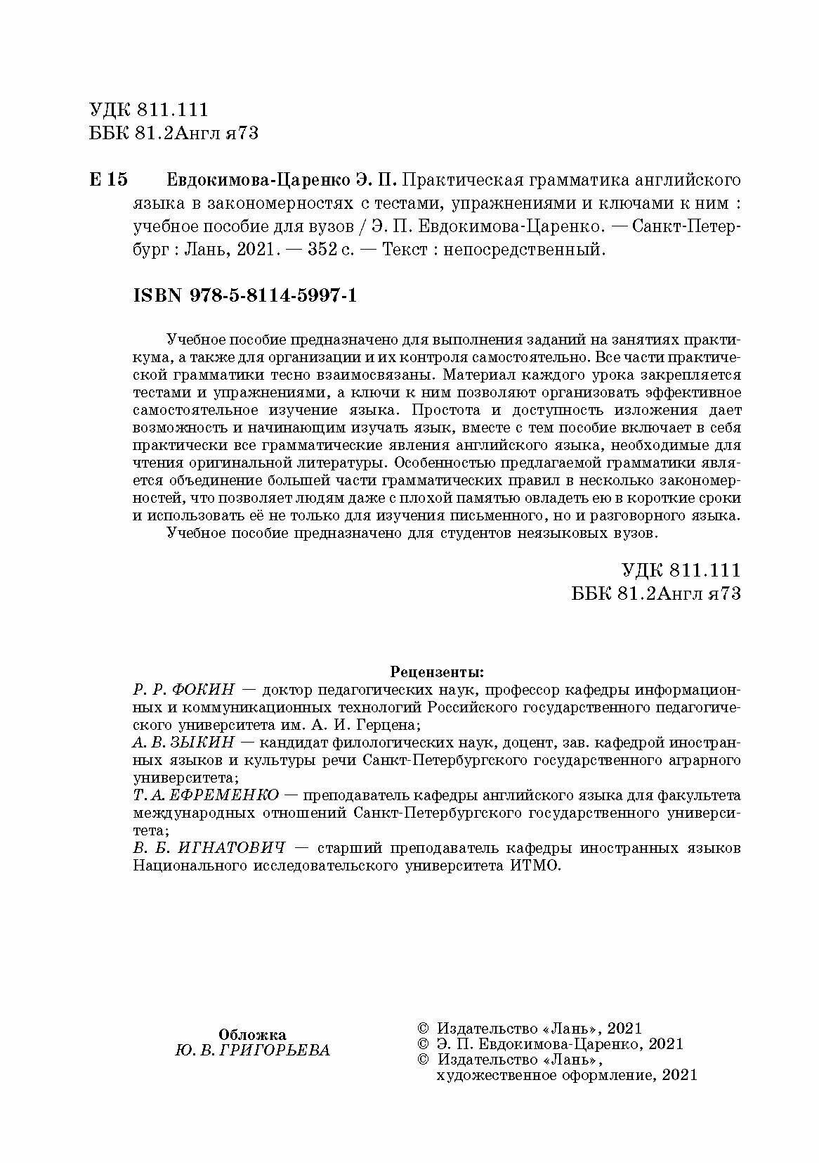 Практическая грамматика англ.яз.в законом.с тестам (Э. П. Евдокимова-Царенко); Издательство ЛАНЬ, 2021