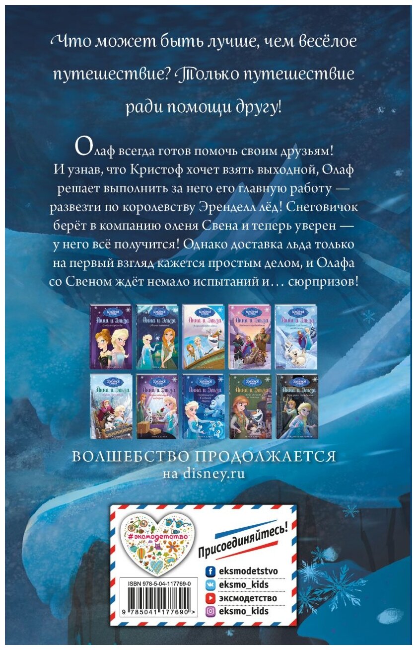 достойный рассказ любимого героя из мультфильма "Храбрые сердце".Олаф как всегда очаровает своим поведением и диким желанием помочь своим друзьям в нелегкой доставке льда в город. Крупный шрифт позволит юнным читателям самостоятельно погрузиться в знакомый мир волшебного королевства Анны. А не большой объём скрасит не один час увлекательного чтения в кругу друзей.