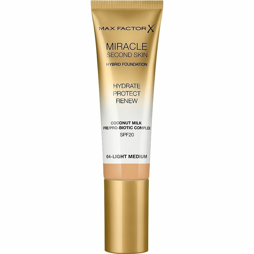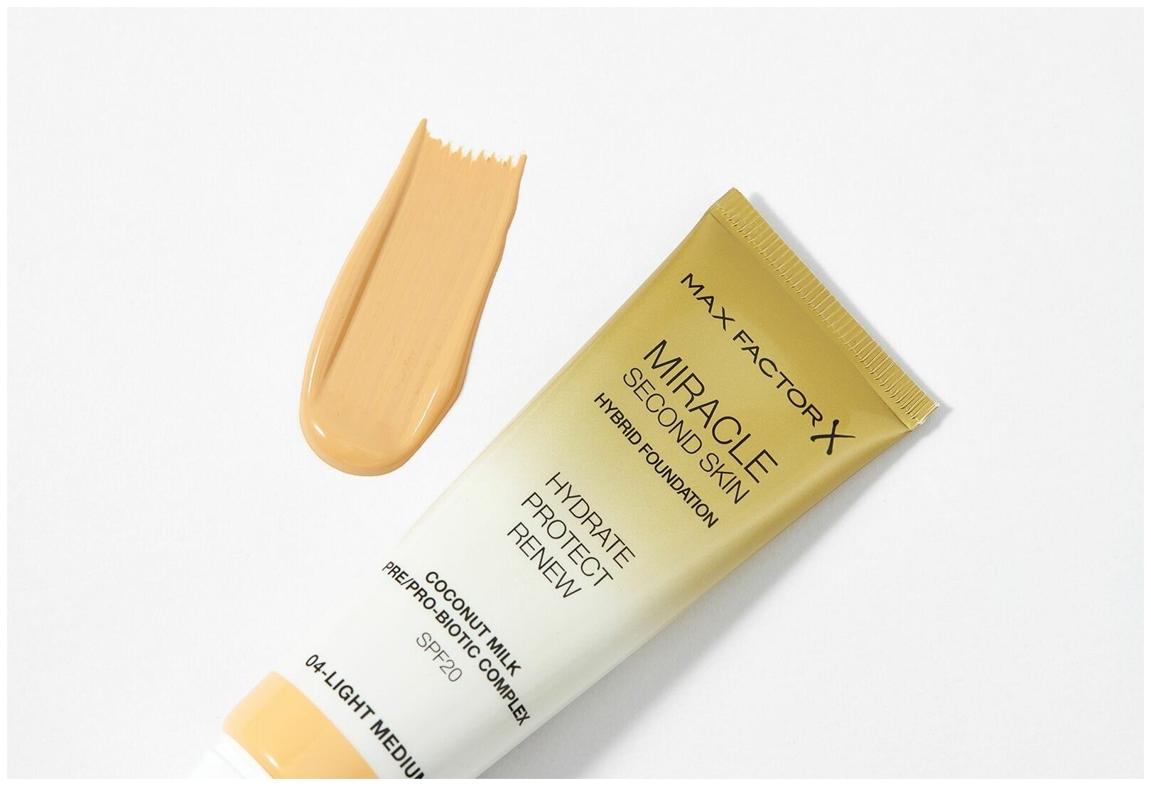 Тональное средство Max Factor Miracle Second Skin - уникальный гибридный тональный крем с натуральным кокосовым молоком для увлажнения на весь день. Невесомая, насыщенная, легко смешиваемая формула скользит над порами и дарит коже незаметное покрытие, которое выглядит как чистая кожа. Обогащенная пре и пробиотиками для защиты кожи, формула Miracle Second Skin клинически проверена на поддержание процесса обновления кожи и содержит SPF 20 для дополнительной защиты. Тональный крем подходит для всех типов кожи, включая чувствительную. Чтобы выбрать идеальный оттенок, нанесите тональный крем на линию подбородка. Чтобы добиться ровного покрытия, нанесите небольшое количество крема на центр лица и растушуйте по всему лицу с помощью кисти, спонжа или пальцев. Для более плотного покрытия, убедитесь, что первый слой нанесен хорошо и добавьте небольшое количество тонального крема в необходимые места.