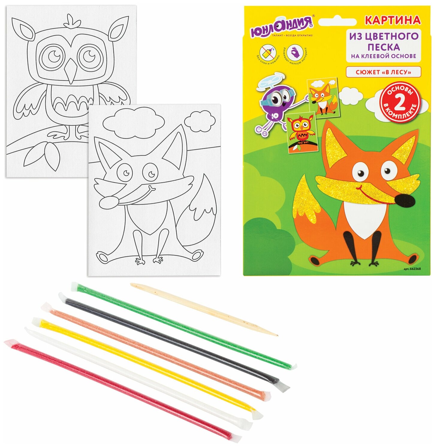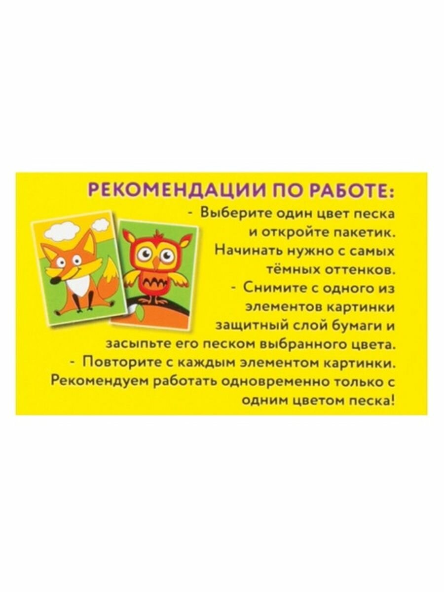 Картина из цветного песка Юнландия-это интересный способ развития мелкой моторики, цветового восприятия и фантазии ребёнка, а также блестящая картина своими руками! Для создания аппликации не требуются ножницы и клей, всё необходимое входит в набор.