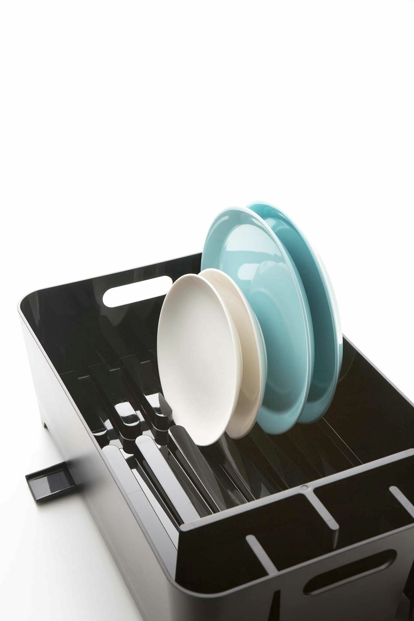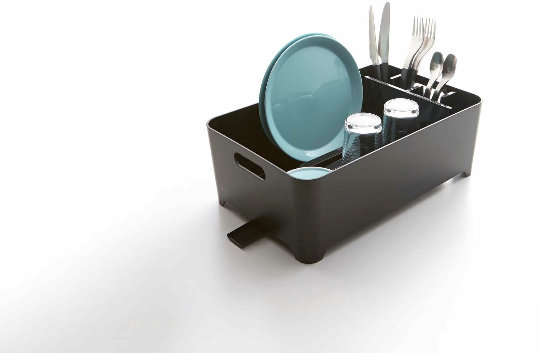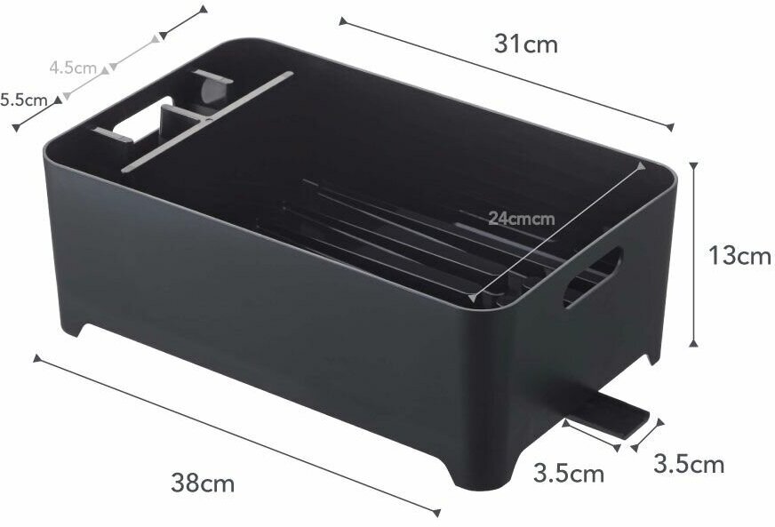 Материал: АБС-пластик. Размер: ширина 38, длина 24, высота 13. Цвет: черный. Вода из сушки посуды стекает на дно и скатывается обратно в раковину. Тщательно разработанная структура сохраняет посуду и сушилку сухими и чистыми. Небольшой размер экономит кухонное пространство.