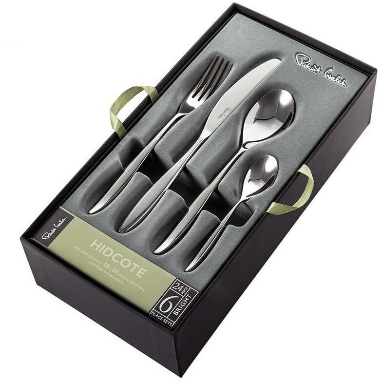 Коллекция состоит из 24 приборов, предназначенных для подачи горячих блюд и десертов. Элегантная подарочная упаковка делает серию столовых приборов Hidcote Bright лучшим презентом для людей с изысканным вкусом.