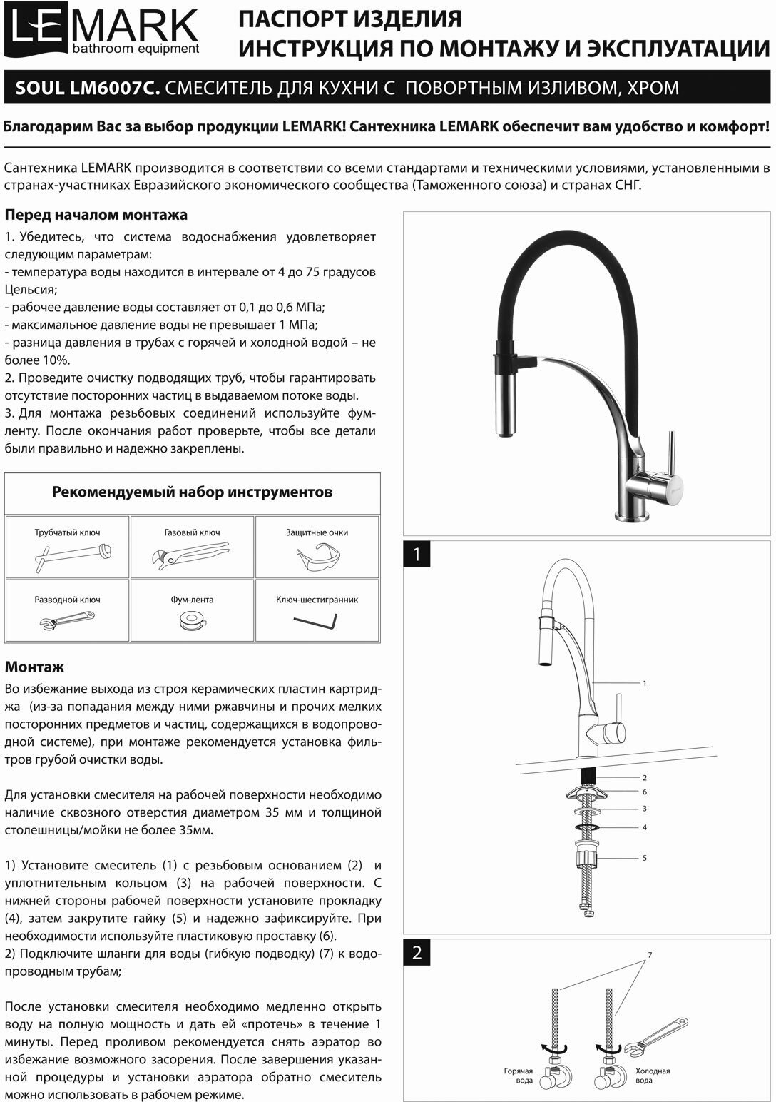 | Установка | На мойку / На столешницу |
