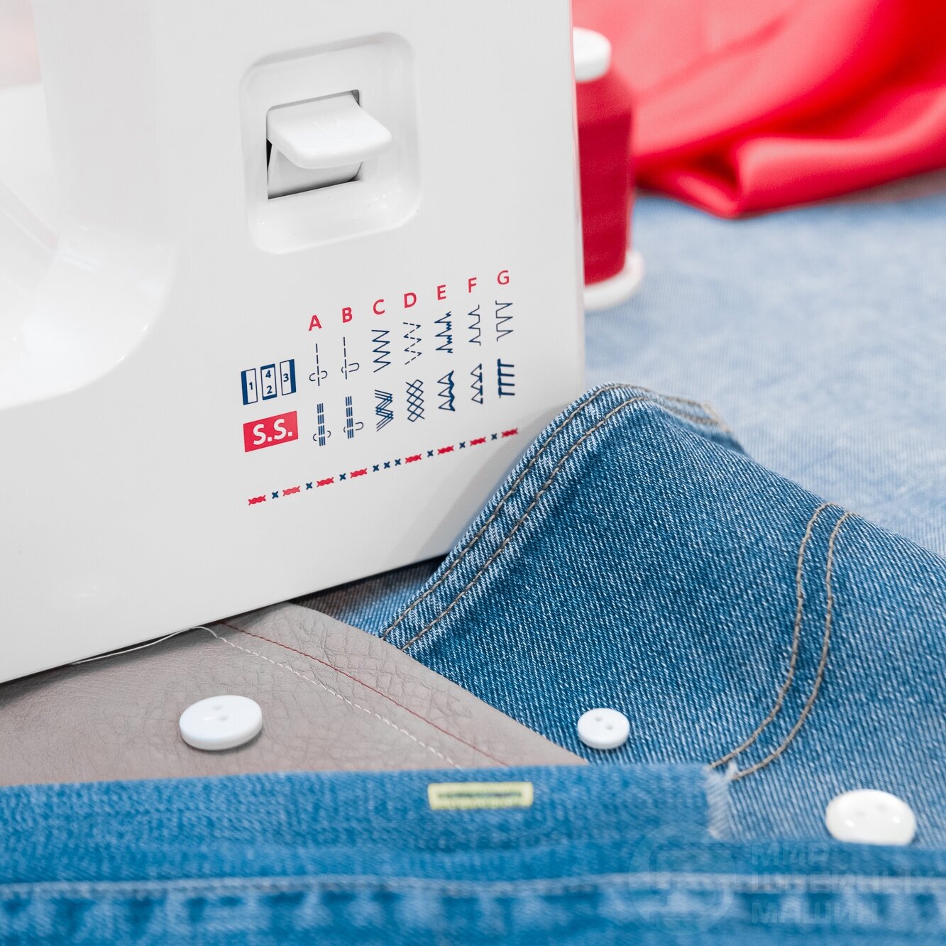 В устройстве предусмотрена возможность регулировать длину стежка до 4 мм, ширину зигзага – до 5 мм, а еще – нитевое натяжение. Имеется вспомогательный подъем лапки и специальный отсек, где удобно хранить аксессуары. Устройство со светодиодным освещением упрощает процесс шитья.