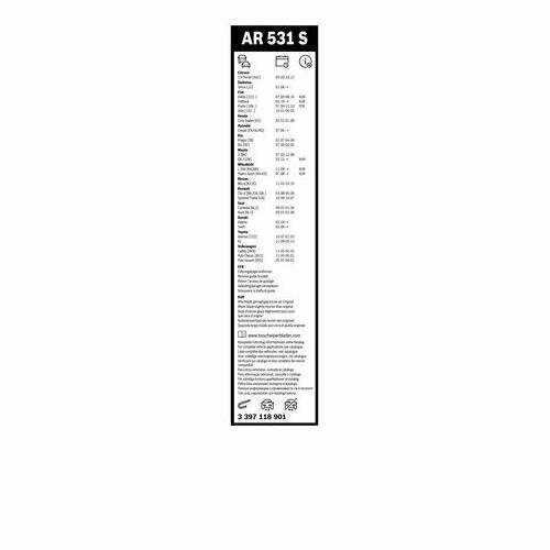 Комплект Щеток Стеклоочистителя Bosch 530Мм+450Мм 3397118901 Aerotwin AR531S 3397118901