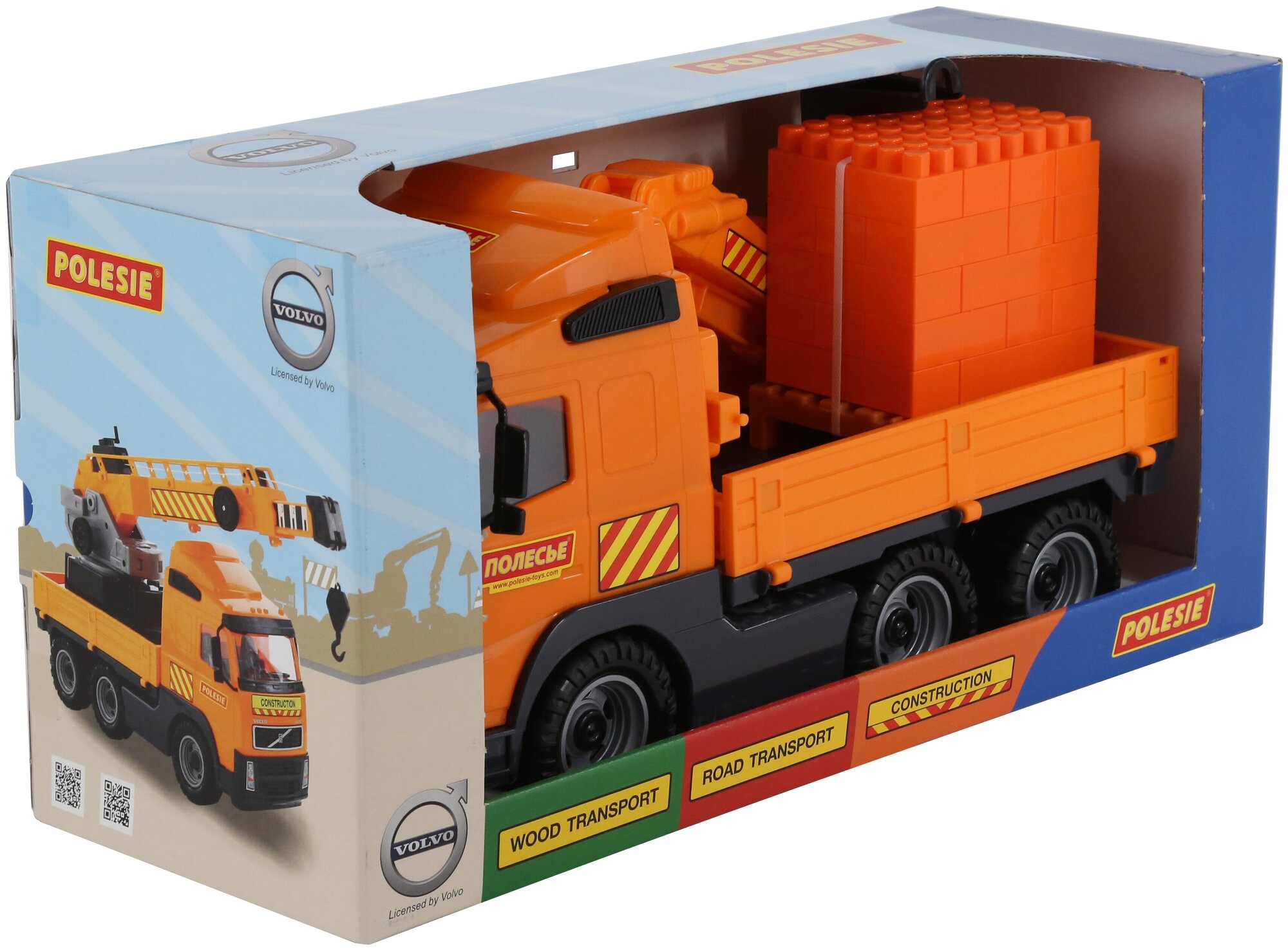 Автокран Wader Volvo с конструктором (9586) 45 см Polesie Автомобиль-кран с манипулятором + конструктор Супер-Микс, 30 деталей (разноцветный)