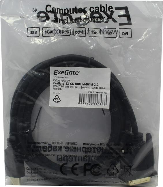 Сервис сравнения цен СкидкаГИД предлагает сравнить цены на товар «Кабель ExeGate HDMI - DVI (EX284907RUS) 3 м черный»