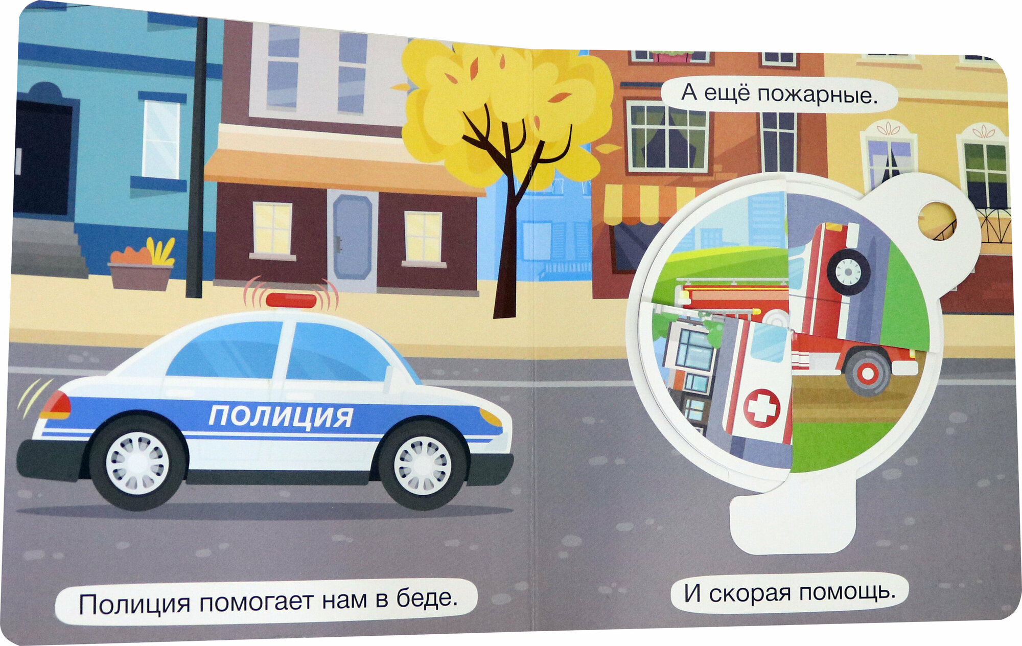 Яркая книжка-игрушка "Полезные машинки" из серии "Крутые крутилки" познакомит маленького читателя с различным транспортом и его предназначением. Уникальные развивающие книги для малышей с меняющимися картинками. При повороте колеса одна картинка превращае