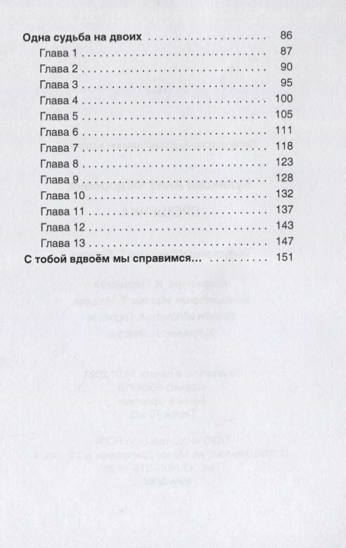 В книгу вошли две повести и рассказ. И хотя они о разных событиях, но объединены одной темой – нелёгкой судьбой двух поколений. В повести «Брошенка» речь идёт о добрых, сильных и благородных людях, спасших маленькую девочку, которая выросла настоящим человеком. А повесть «Одна судьба на двоих» и рассказ «С тобой мы вместе справимся» написаны в жанре мелодрамы, повествуют о нелёгкой судьбе хороших людей и большой жертвенной любви. Произведения написаны лёгким и приятным для чтения языком.