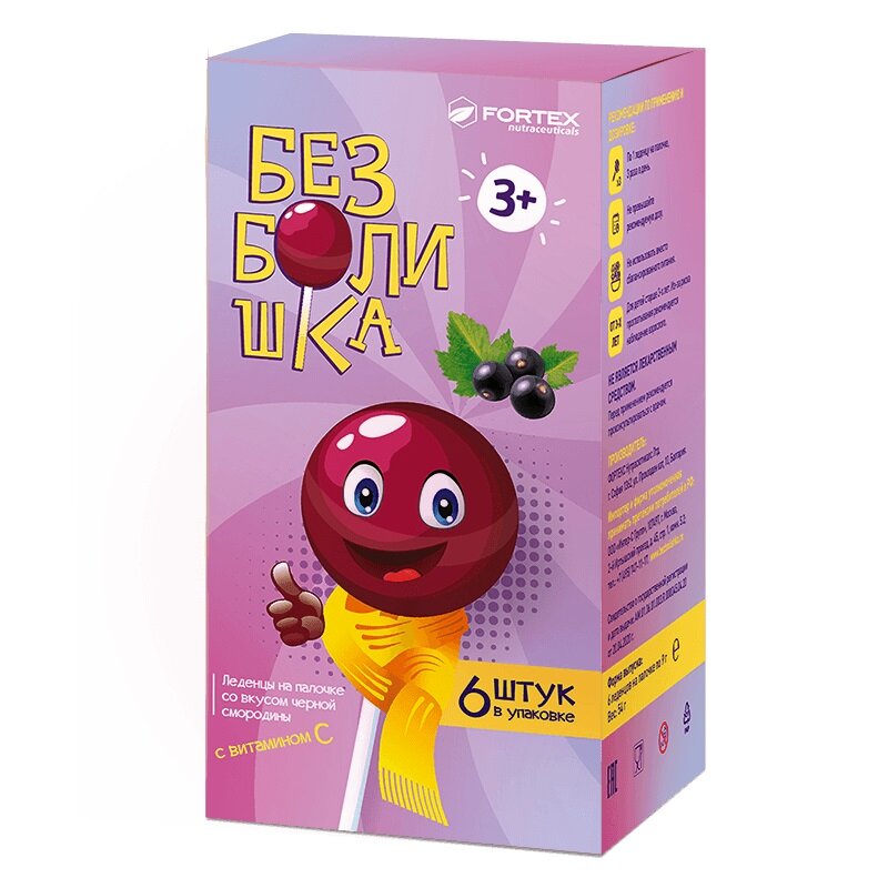 Безболишка леденцы на палочке с соком черной смородины №6 ООД "Фортекс Нутрасютикалс" BG (1395730)
