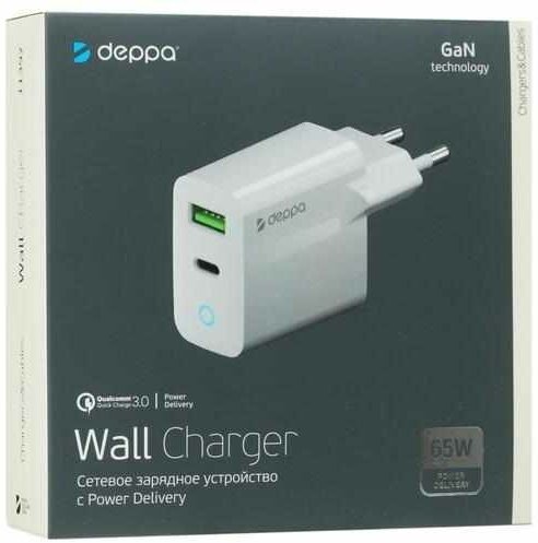 Сетевое зарядное устройство DEPPA 65W USB + USB type-C 8-pin Lightning (Apple) 3A белый 11397