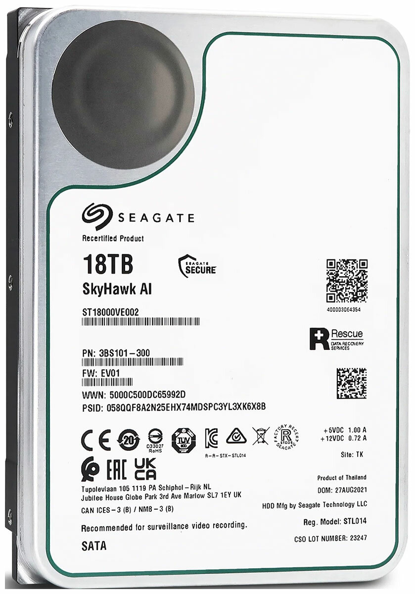 Жесткий диск SEAGATE SkyHawkAI 18ТБ HDD SATA III 3.5" ST18000VE002