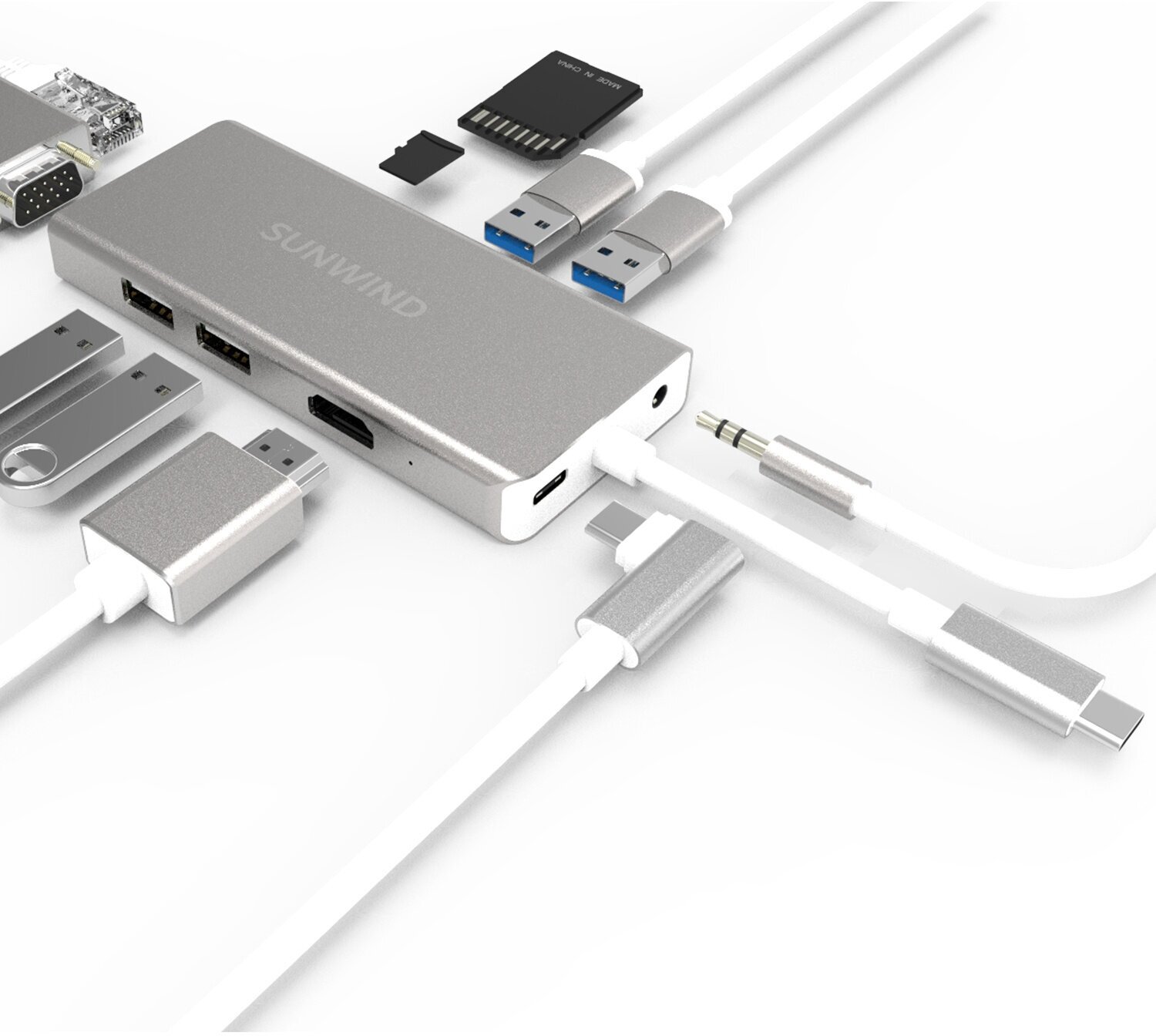 | Описание | Type-Cдок-станция SUNWIND, 11 портов (HDMI (4K@60Hz), VGA, RJ45, 2xUSB 2.0, 2xUSB 3.0, Audio 3.5mm,PD 3.0 USB-C 60W,MicroSD, SD) |