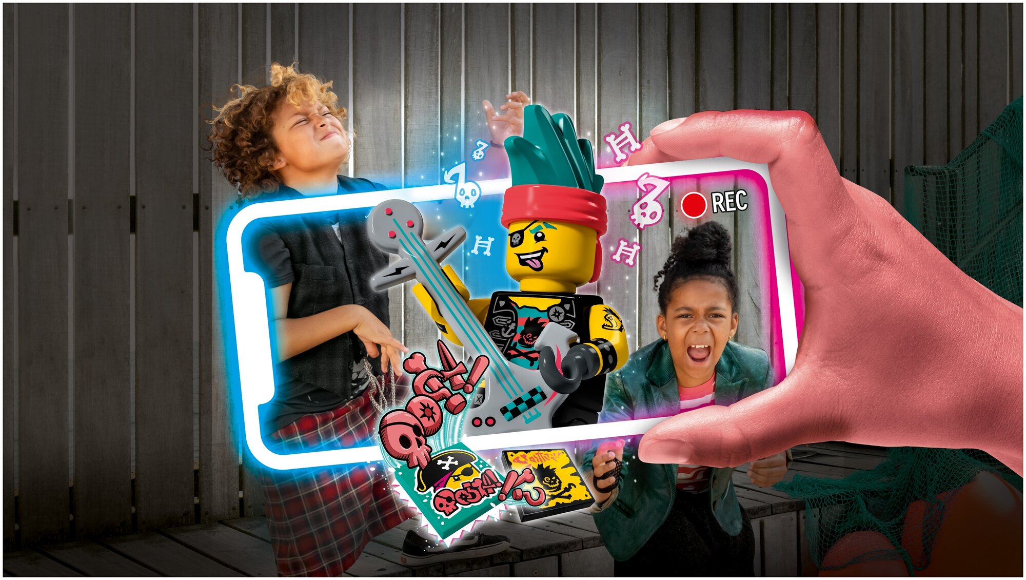 Игровой набор, с которым легко и интересно создавать клипы с участием Пирата Панка, играющего на гитаре-якоре. На импровизированной сцене можно создавать спецэффекты и менять слова песни на звуки «ар-р». Для этого необходимо загрузить бесплатное приложение LEGO® VIDIYO, отсканировать минифигурку, аксессуары и прилагаемые тайлы BeatBits со спецэффектами, а затем добавить музыкальные и световые спецэффекты и поделиться готовым клипом в приложении. Размер бокса 8х7х10 см.
