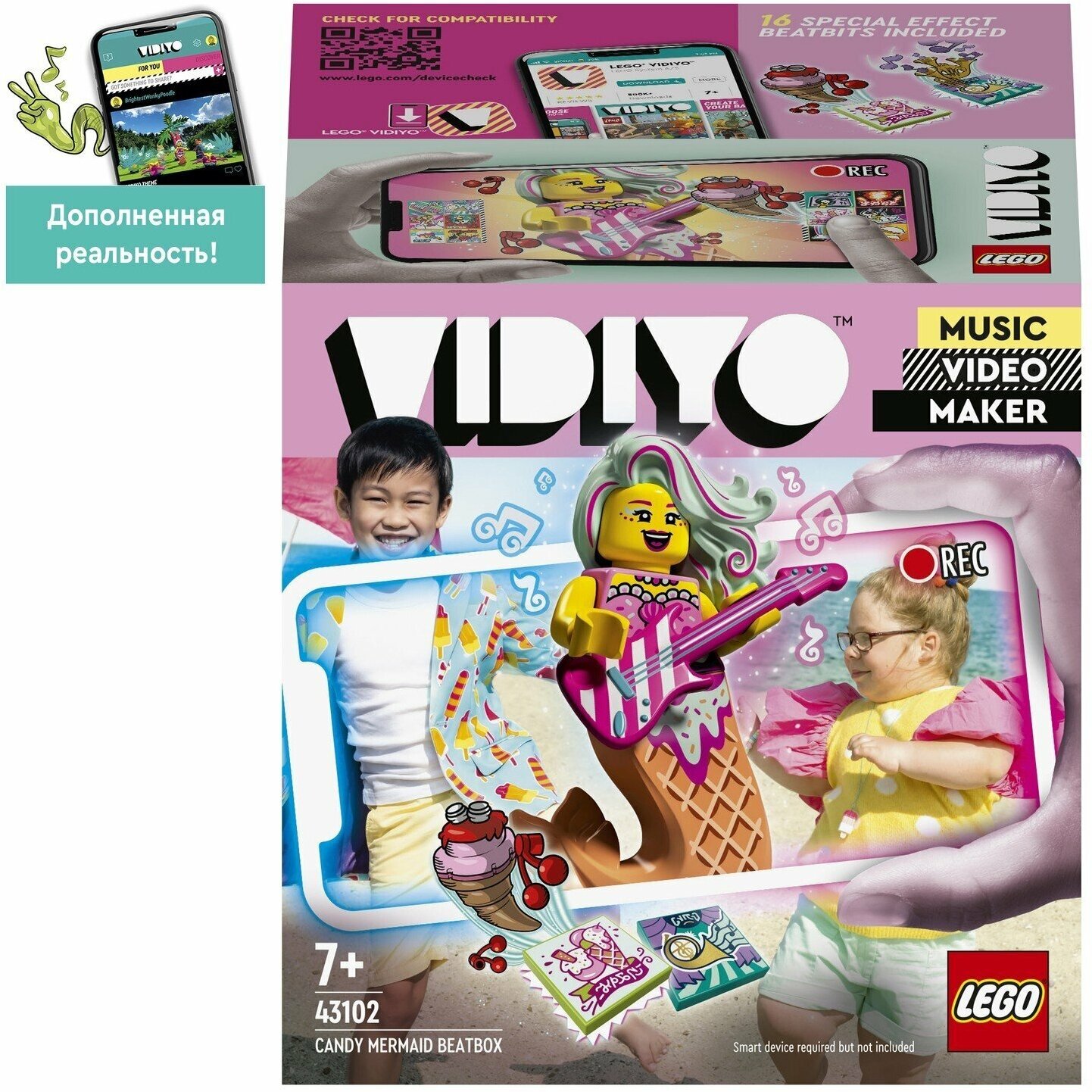 Откройте мир музыкальных клипов для детей, которые любят танцевать и выступать. С набором LEGO® VIDIYO™ Candy Mermaid BeatBox (Битбокс Карамельной Русалки) (43102) каждая игра будет веселой и захватывающей. Загрузите приложение, чтобы отсканировать минифигурку в стиле «поп» и открыть классный сценический образ русалки. После этого отсканируйте элементы BeatBits (Битбитс), чтобы открыть специальные эффекты, задания и многое другое. Юные режиссеры смогут создавать свои собственные музыкальные клипы и делиться ими с другими авторами в безопасной социальной сети для детей.