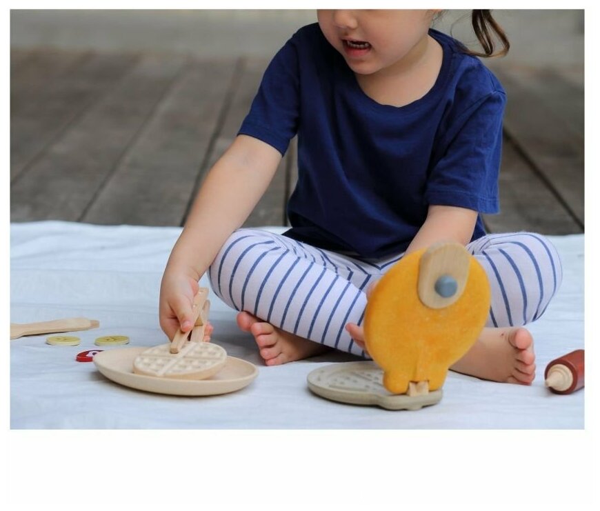 Игровой набор Plan Toys Вафли — это ролевая игра, в которой ребёнок приготовит самые вкусные вафли в мире, а может даже открыть свою вафельную! Кому клубничные вафли в шоколаде?