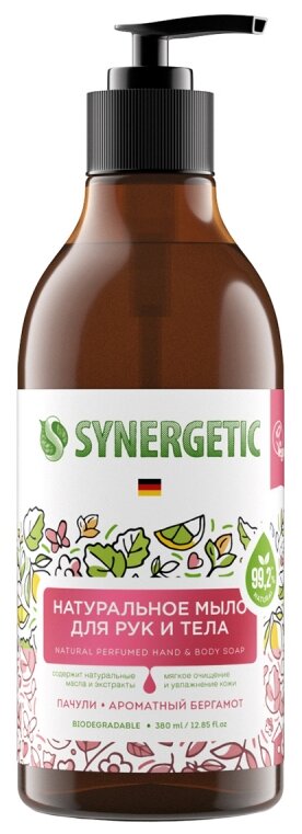Жидкое мыло Synergetic "Пачули и ароматный бергамот" для рук и тела 380мл (105001)