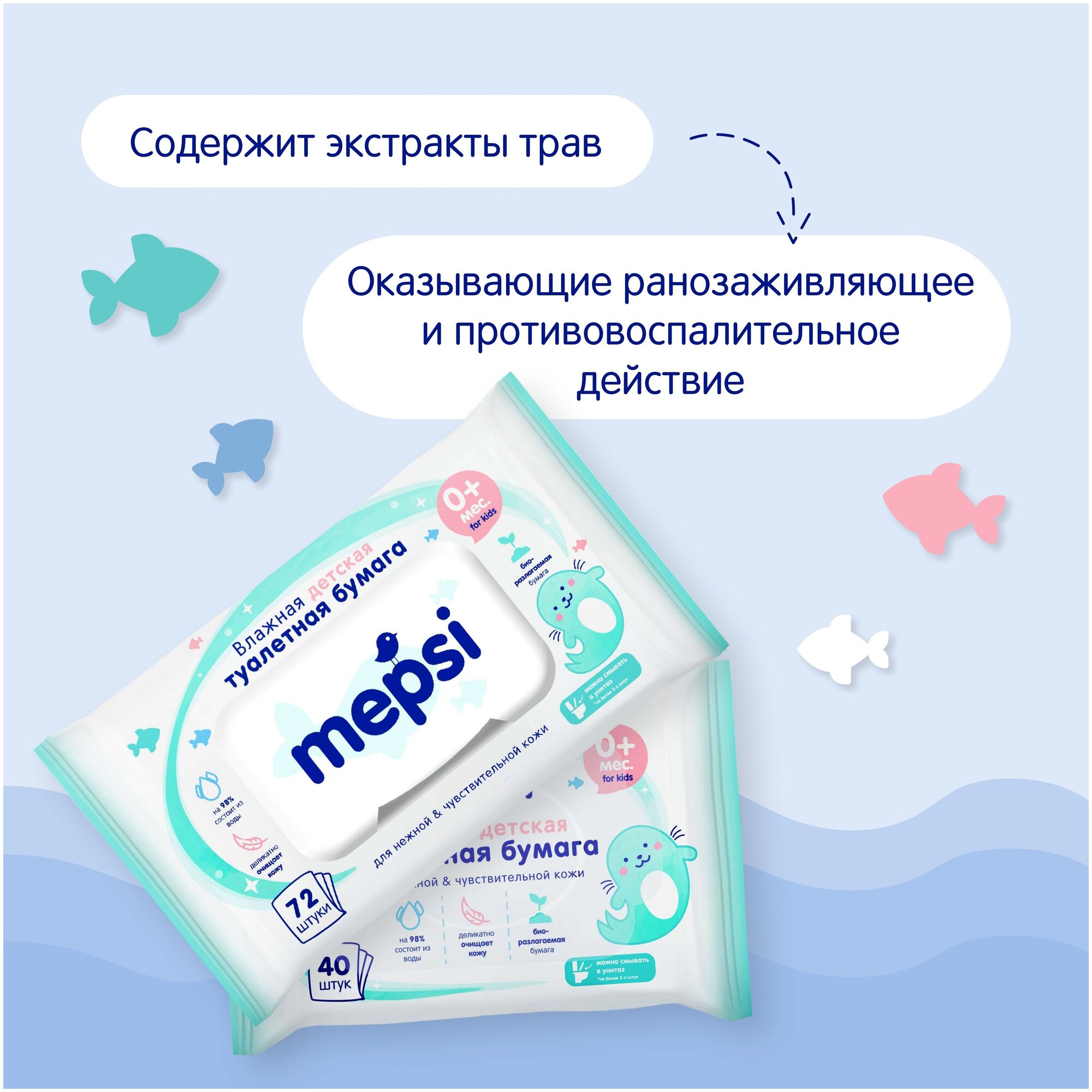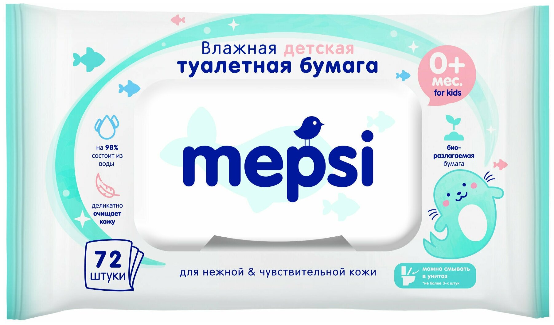 Влажная детская туалетная бумага Mepsi 72шт. (172***)
