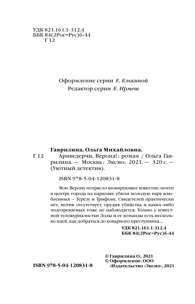 Книга: Ариведерчи Верона! (Ольга Михайловна Гаврилина); Эксмо, 2021