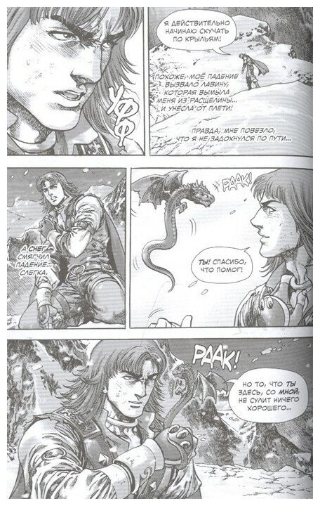 Итак, перед нами отлично прорисованная 2 часть трилогии Солнечного Колодца. Рассказывающая нам о храбром драконе Калесгосе и его новой любви-Анвине. Рисунок как всегда на высоте и завлекает читателя(меня) не только на чтение Манги, но и на просмотр всех страниц с точки зрения прорисовки и дополненности рисунка. От огромного, прорисованного Нордскола, то эпичных баталий между Драконами. Отличная манга и достойный приемник серии!